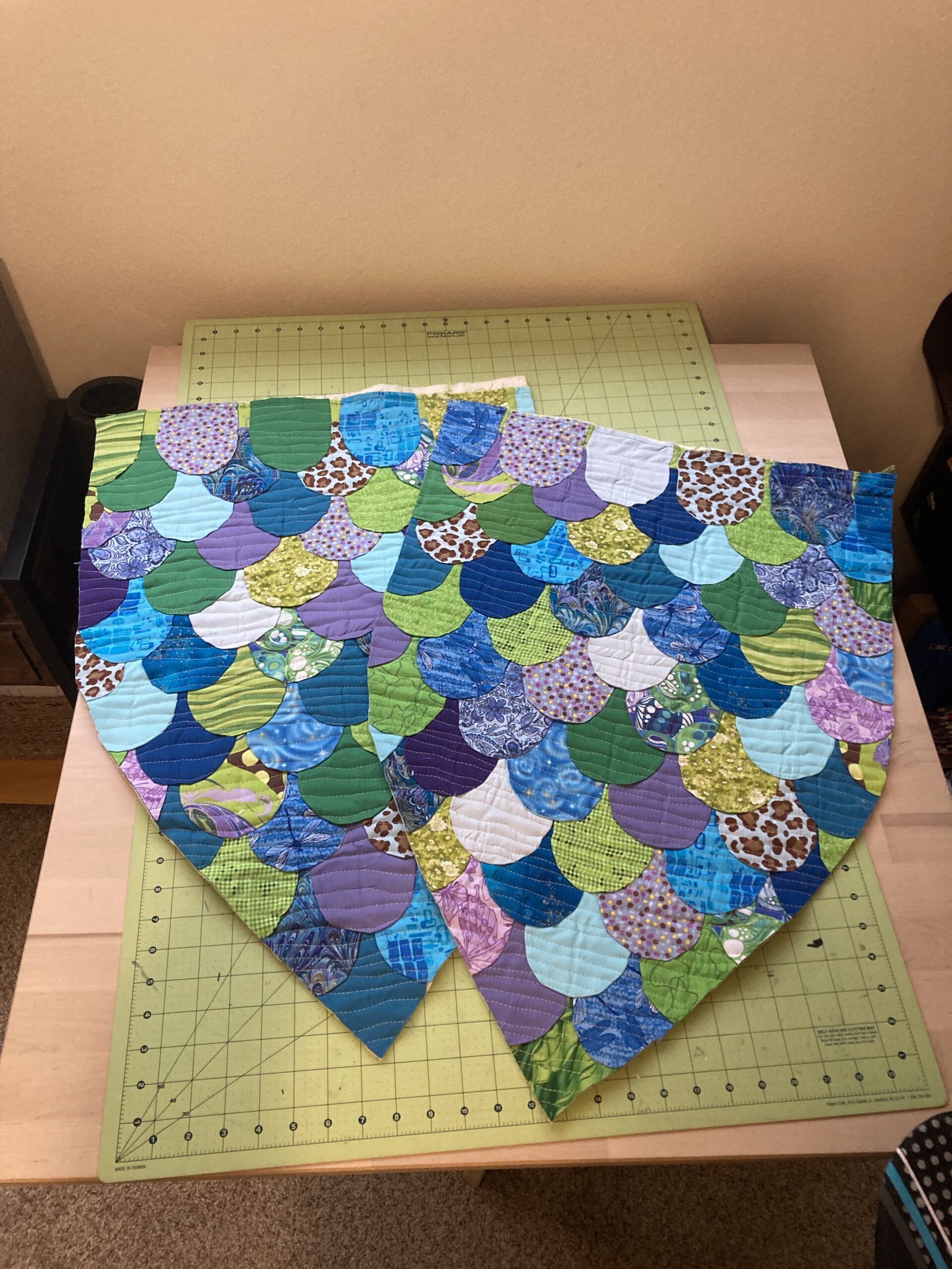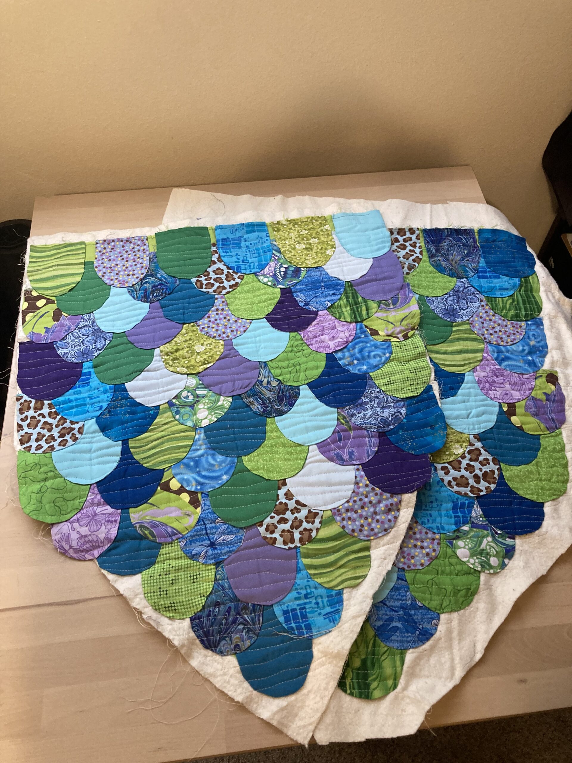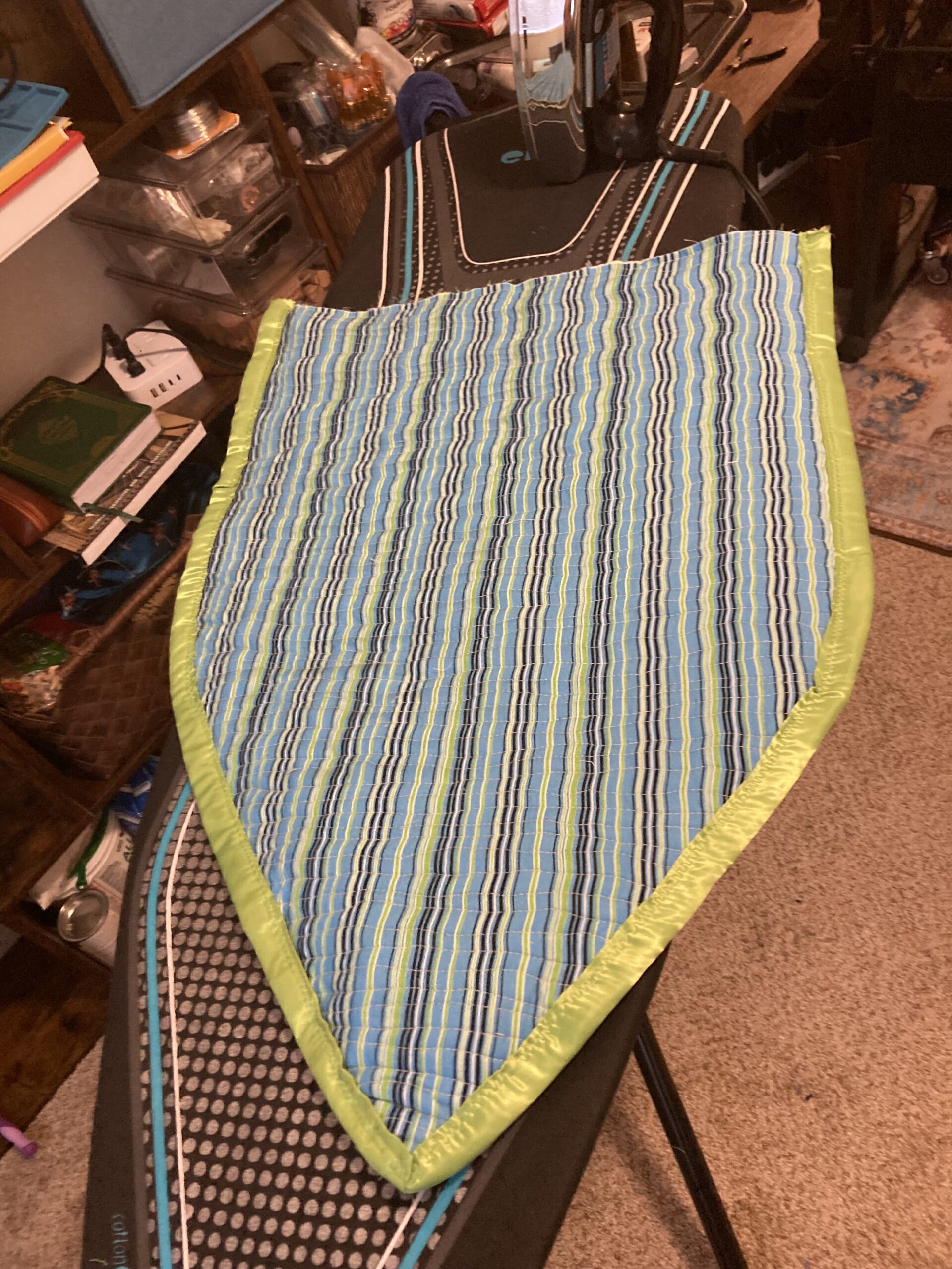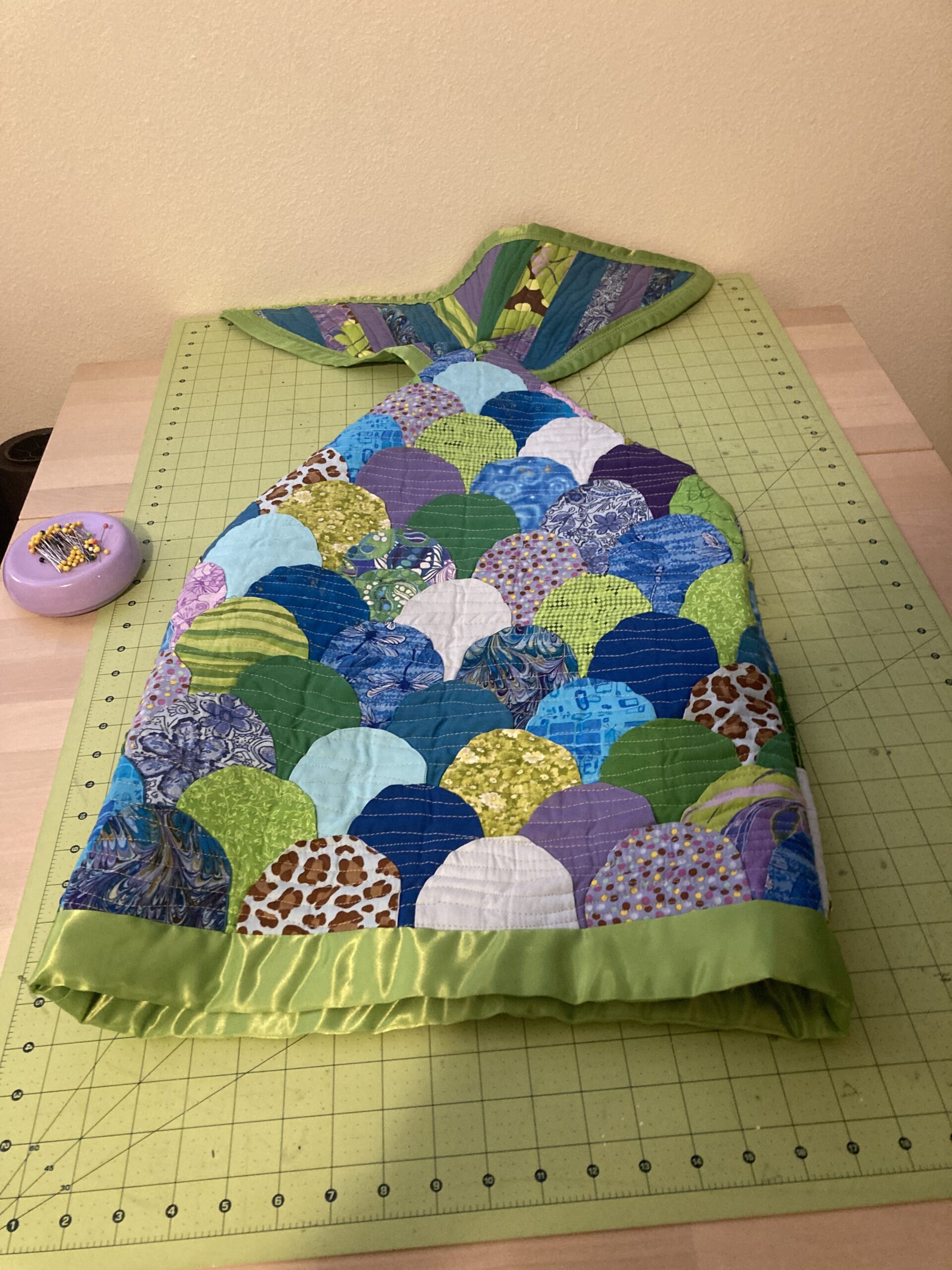 I should have put more (any) thought into the tail, but I find the gather rather endearing. Less so the three or four raw edges I missed by not squaring up the top before I hand stitched the blanket binding. Sealed them with zig-zag stitching that blends well – could be worse.