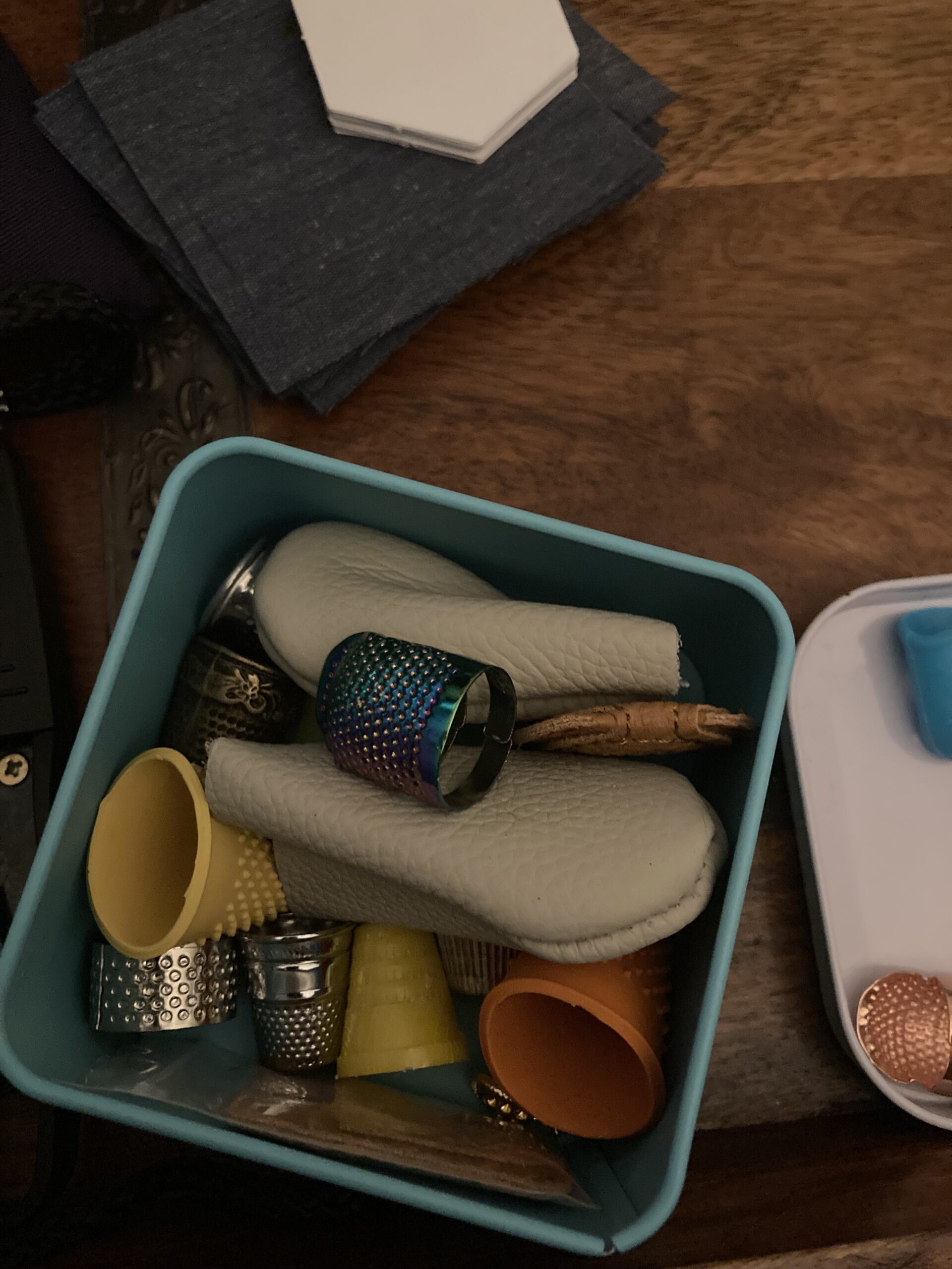 Picked up a thimble kit so I could test out the full range of finger armor. The classic metal with ring around the tip remains my favorite.