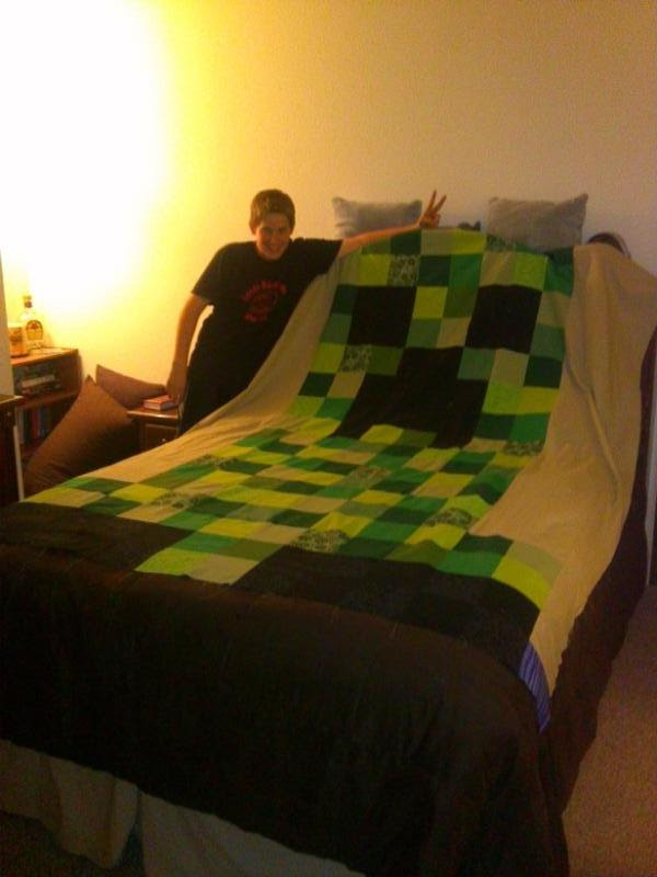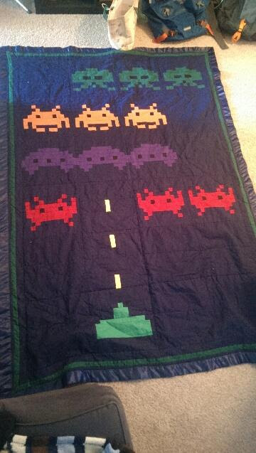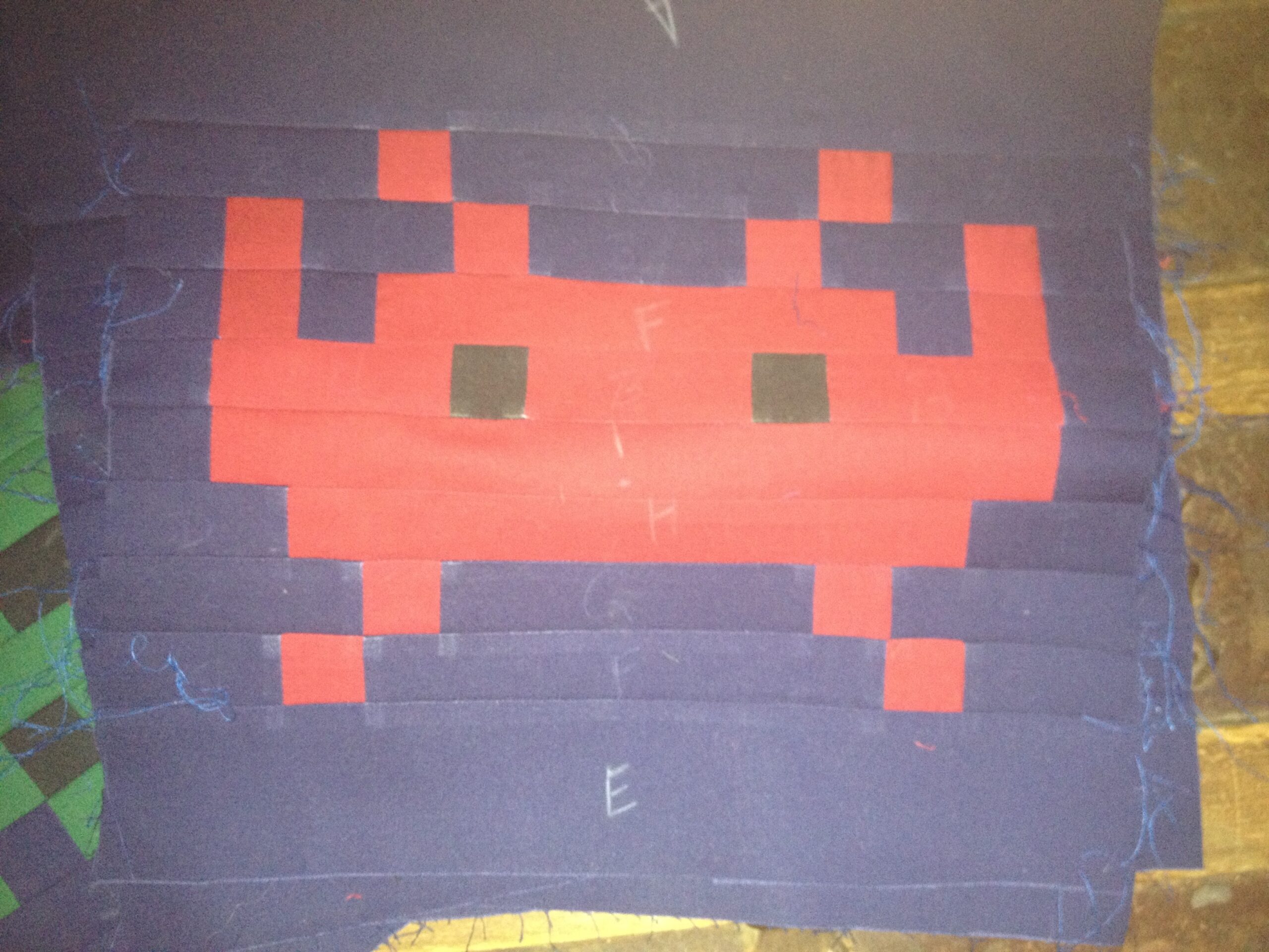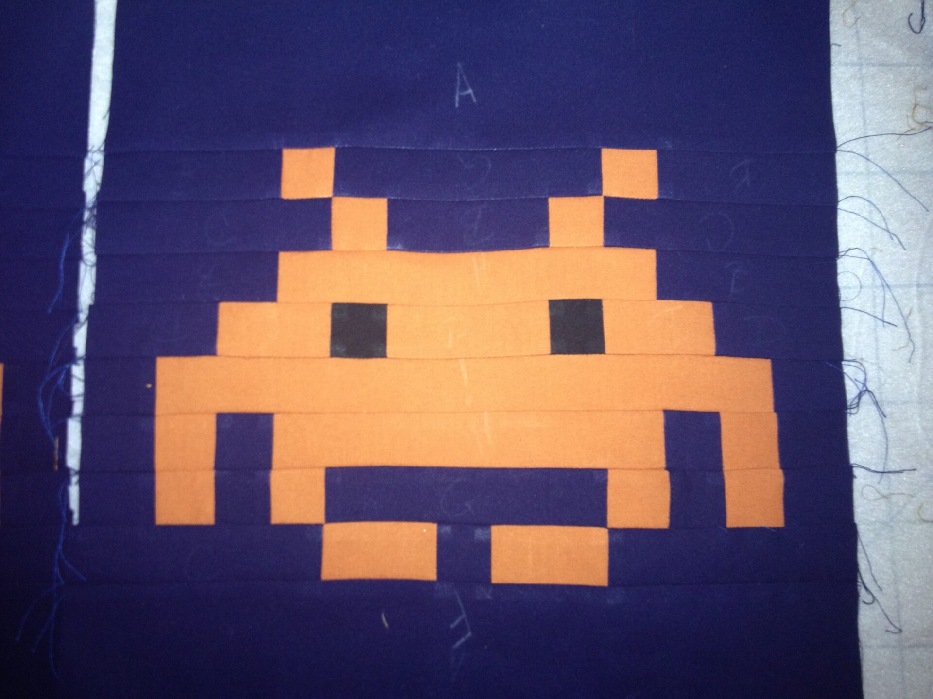 The tiny piecing of the Space Invaders quilt nearly broke me by the end. Had I known about hand piecing then, I probably could have saved myself a great deal of frustration lining up all the teeny-tiny corners. That being said, it remains one of the coolest things I’ve ever made. Even if I did add extra energy bolts.