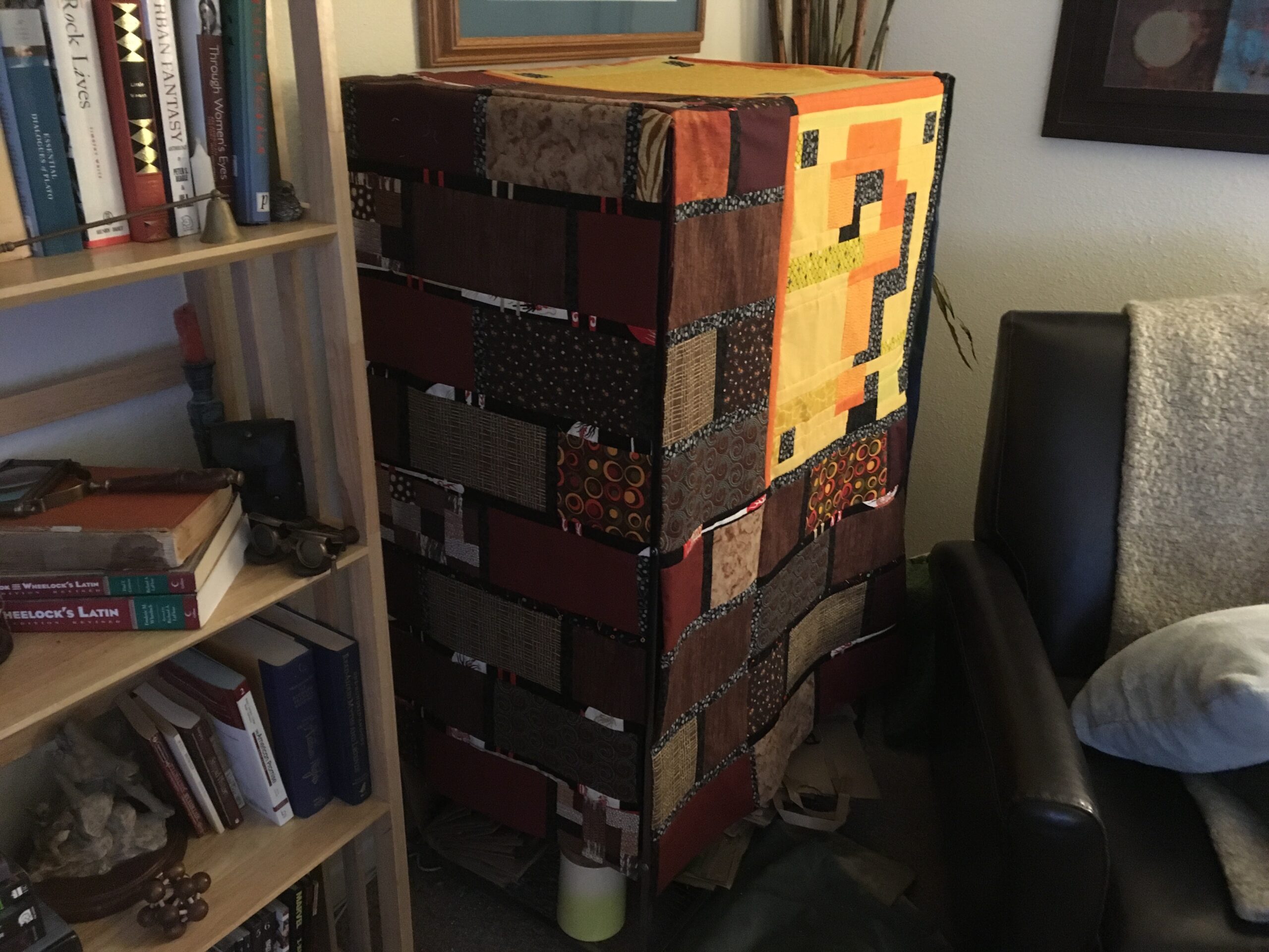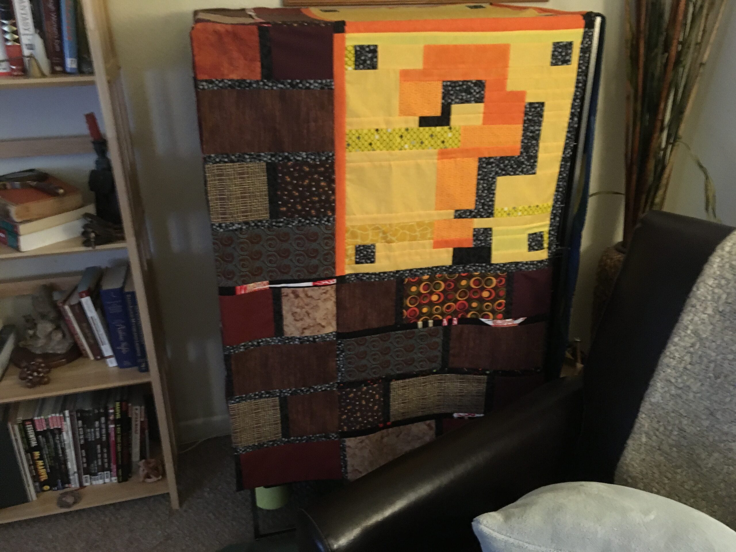 Detour through old pictures. Up until CJ’s t-shirts, it had been a long time since I quilted anything. A 550 sq ft apartment is not conducive to both sewing and painting; not the way I do it. Now that I have dedicated maker space, it probably shouldn’t be surprising that the needles are back. The pattern has been recurring since 1989.