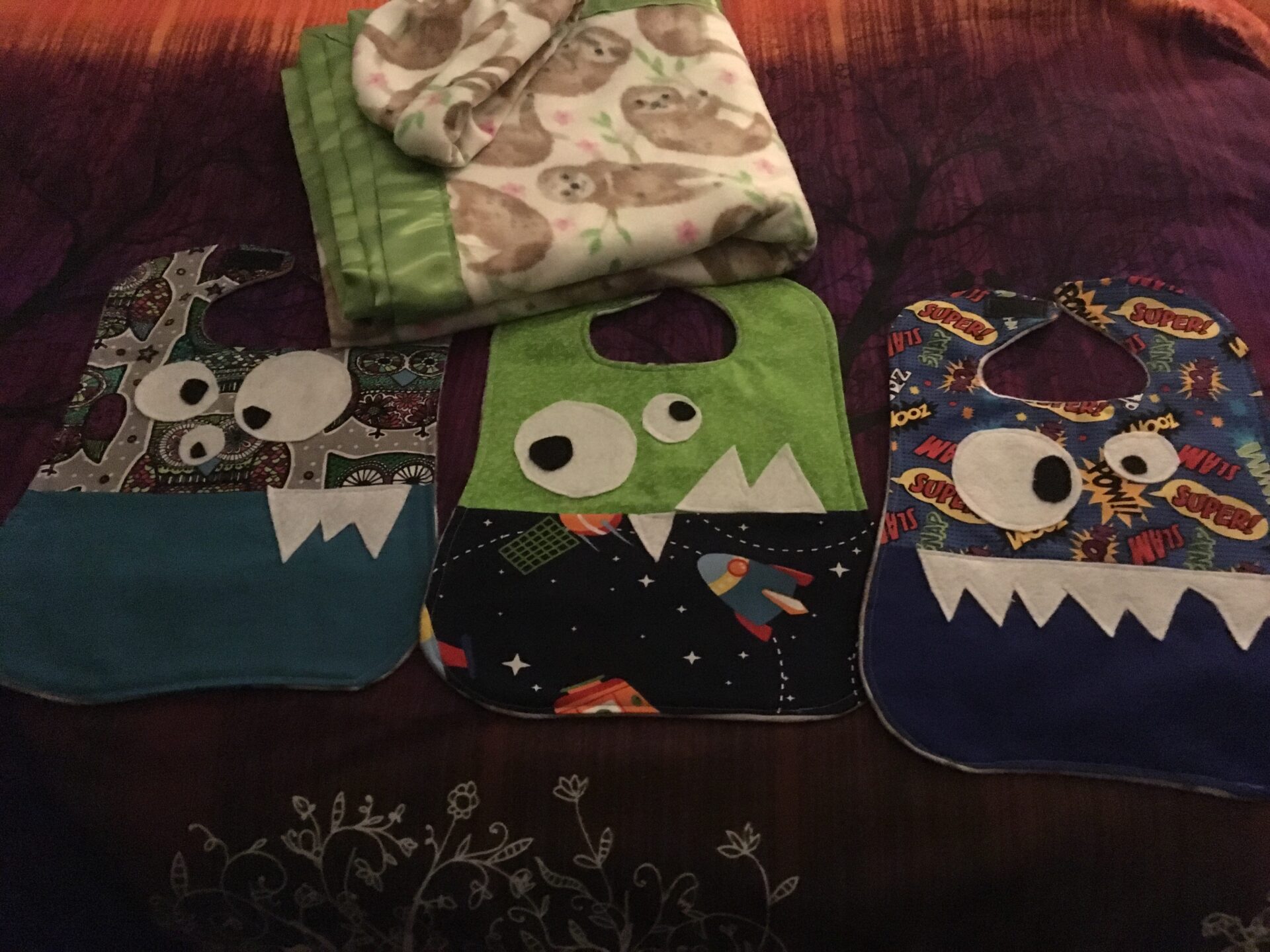 I’ve sewn through fingertip (do not recommend), busted my knuckle on the needle chuck (somehow worse), and bled from innumerable pin sticks and blade mishaps, from my thumbs to the bottom of my feet (please don’t ask). And yet. Never could say no to a bib request.
