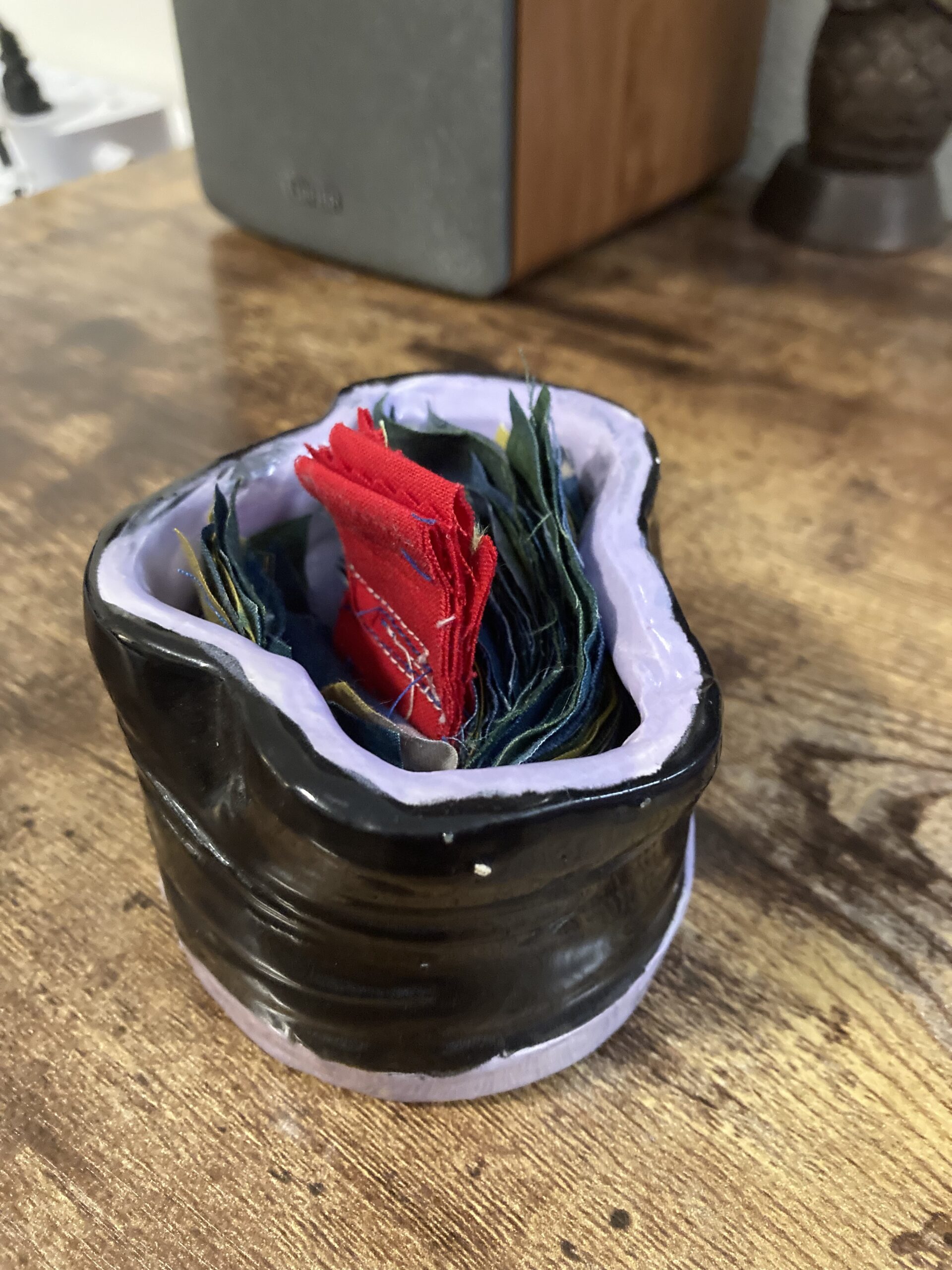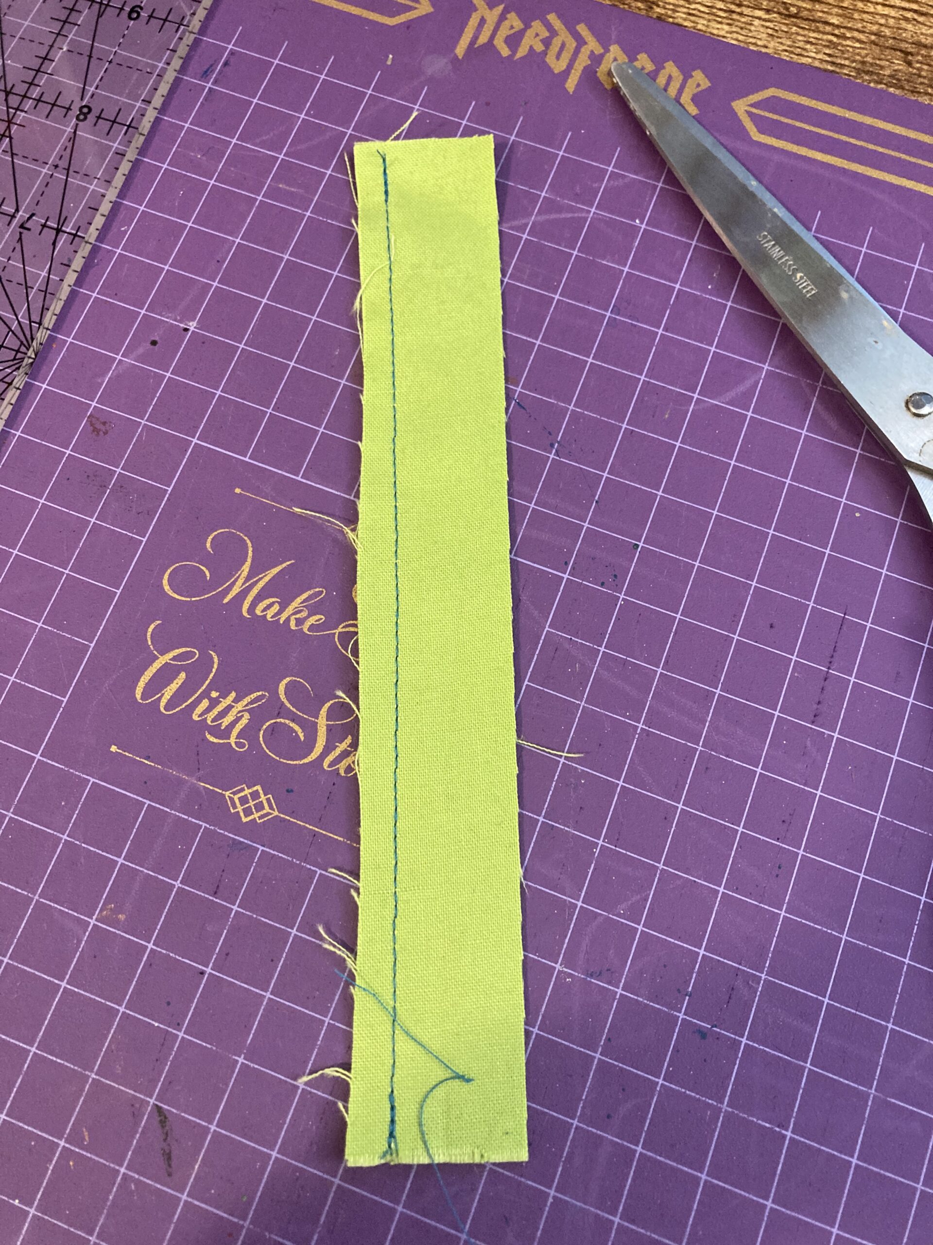 My scrap bag has been full since I packed my sewing things away. It’s my first bag of scraps, so I didn’t really know what to do with them. I didn’t have a YouTube team of experts when I was trying to teach myself this shit. I’ve picked up so many new techniques and hacks. Bless Karen Brown and her masking tape ledge. I was a little concerned that the wonky edge was from sewing, but I think thats the ghost of rotaries past, cause the other side is perfect.