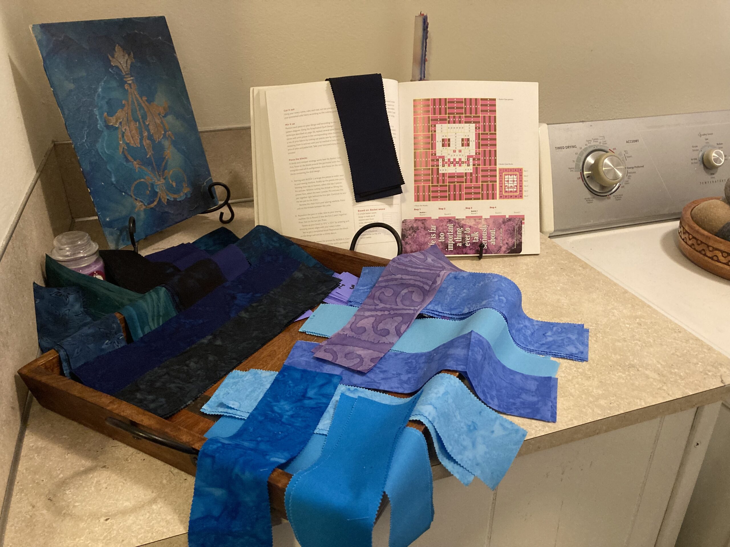 A pity to discover the perfect perch for layouts as I’m preparing to move out. Ended up going back to the pile and pulling a couple more colors to alleviate hue overload in a few sections and deepen the pallette.