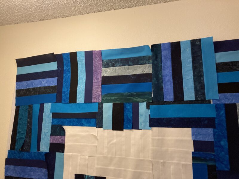 Piecing I’m looking at the front row 2 January 20257 July 2025 melle With the initial column complete, the remaining perimeter is three groupings of four blocks each. One down. Keep Reading