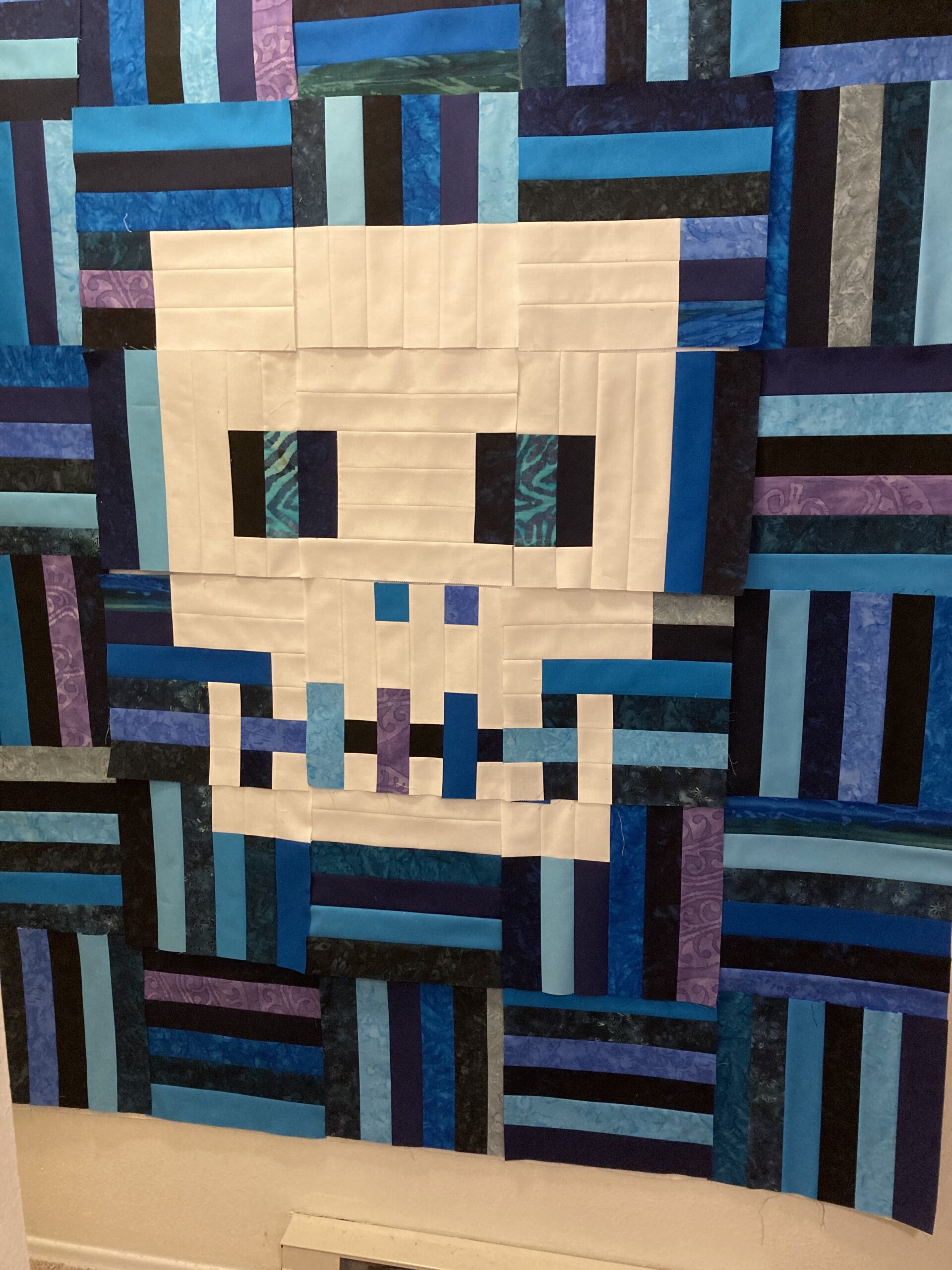 Three interior rows done passably well. Some decent locks, a couple misfires but nothing quilting won’t help with. Maybe