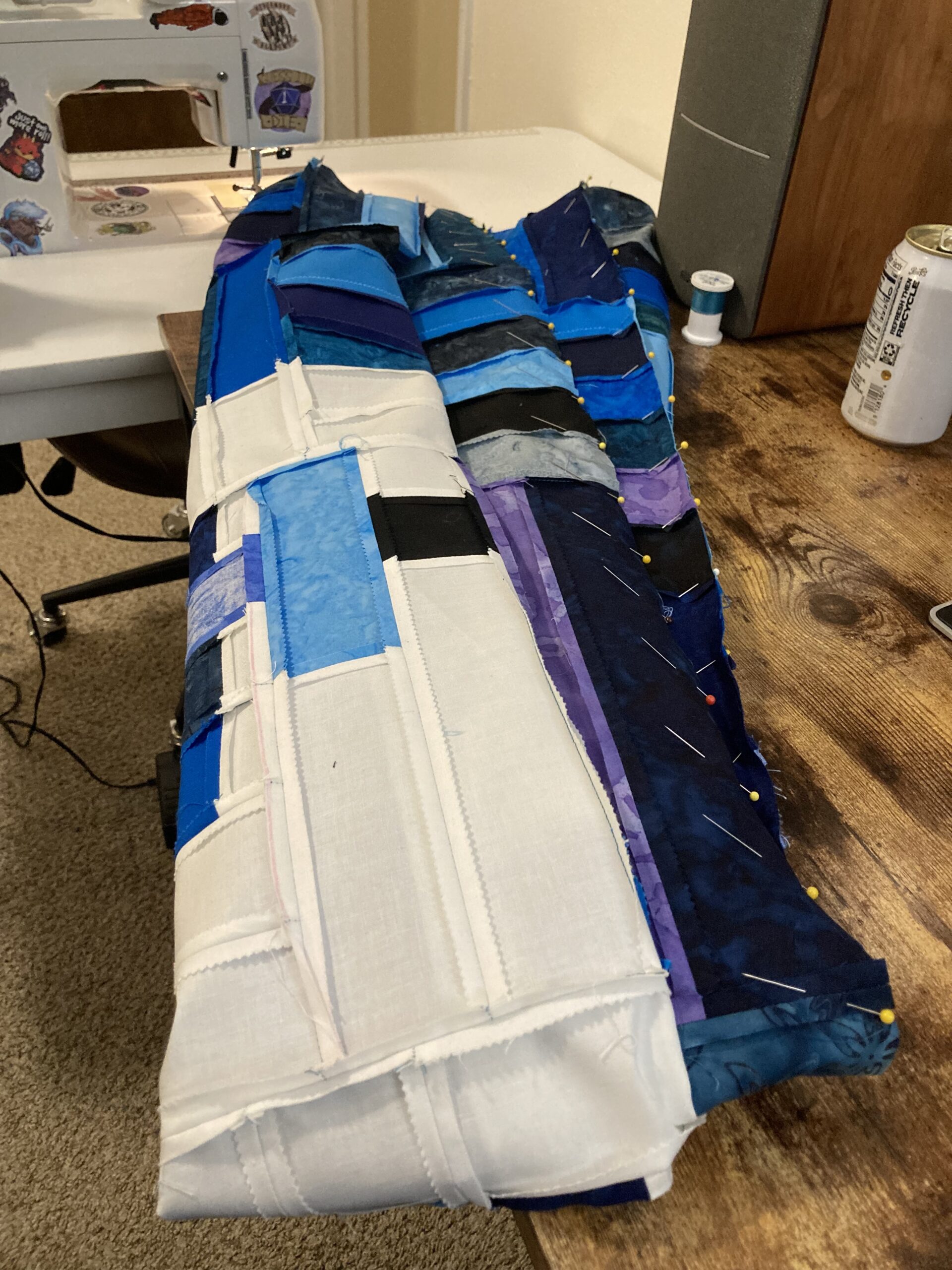 Yeah that didn’t happen. Halfway is better than not at all. Squared up the edges one last time. Final round of wrestling thru the machine and she’s ready for a border.