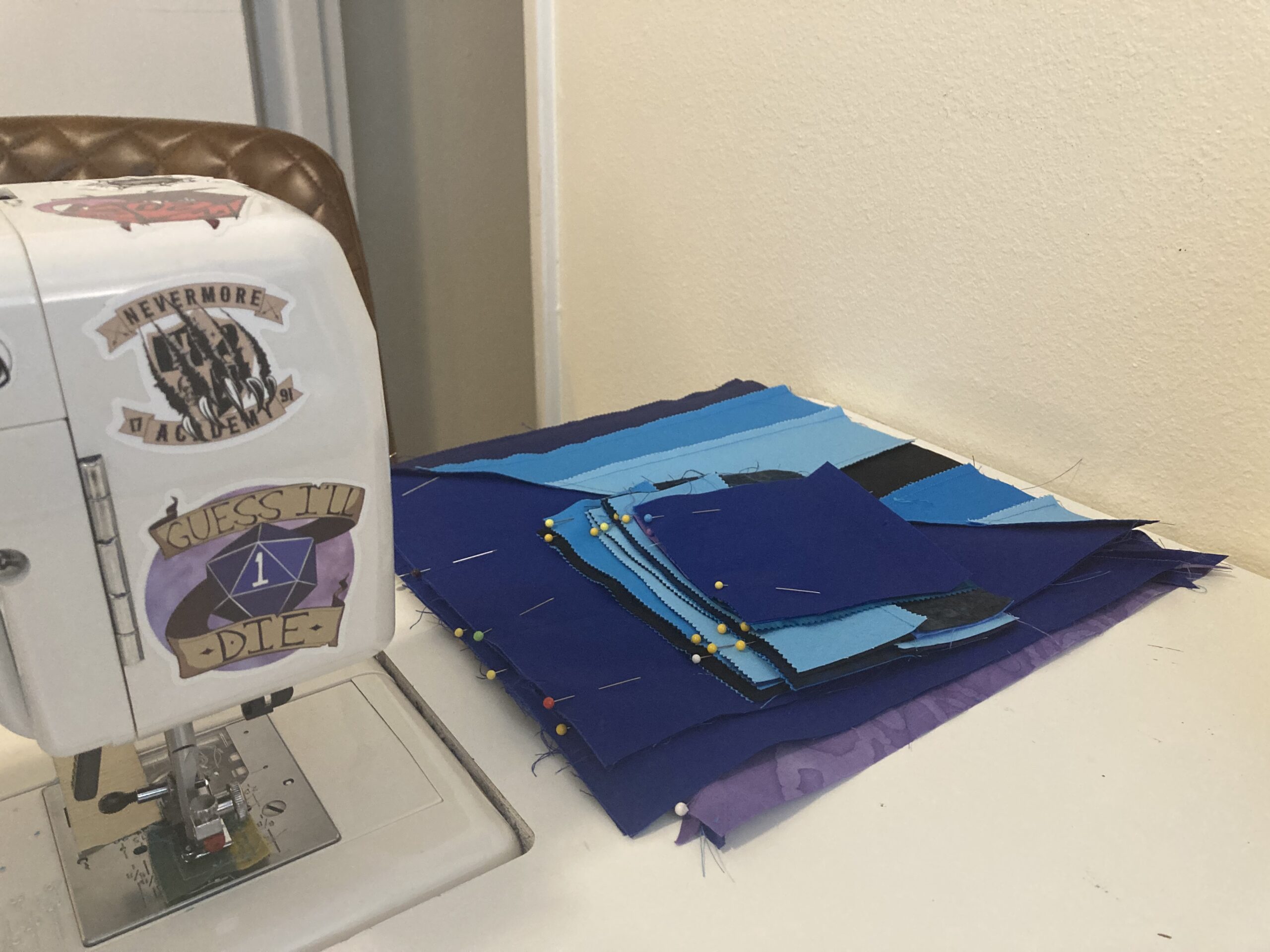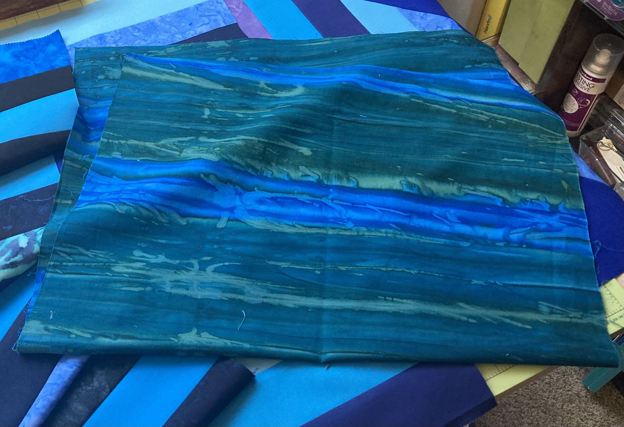 Finished processing the larger scrap strips and shelved the itsy bits. Pulling the last of the blue-green yardage to see if I can use it up. It’s thin and I’m tired of it.