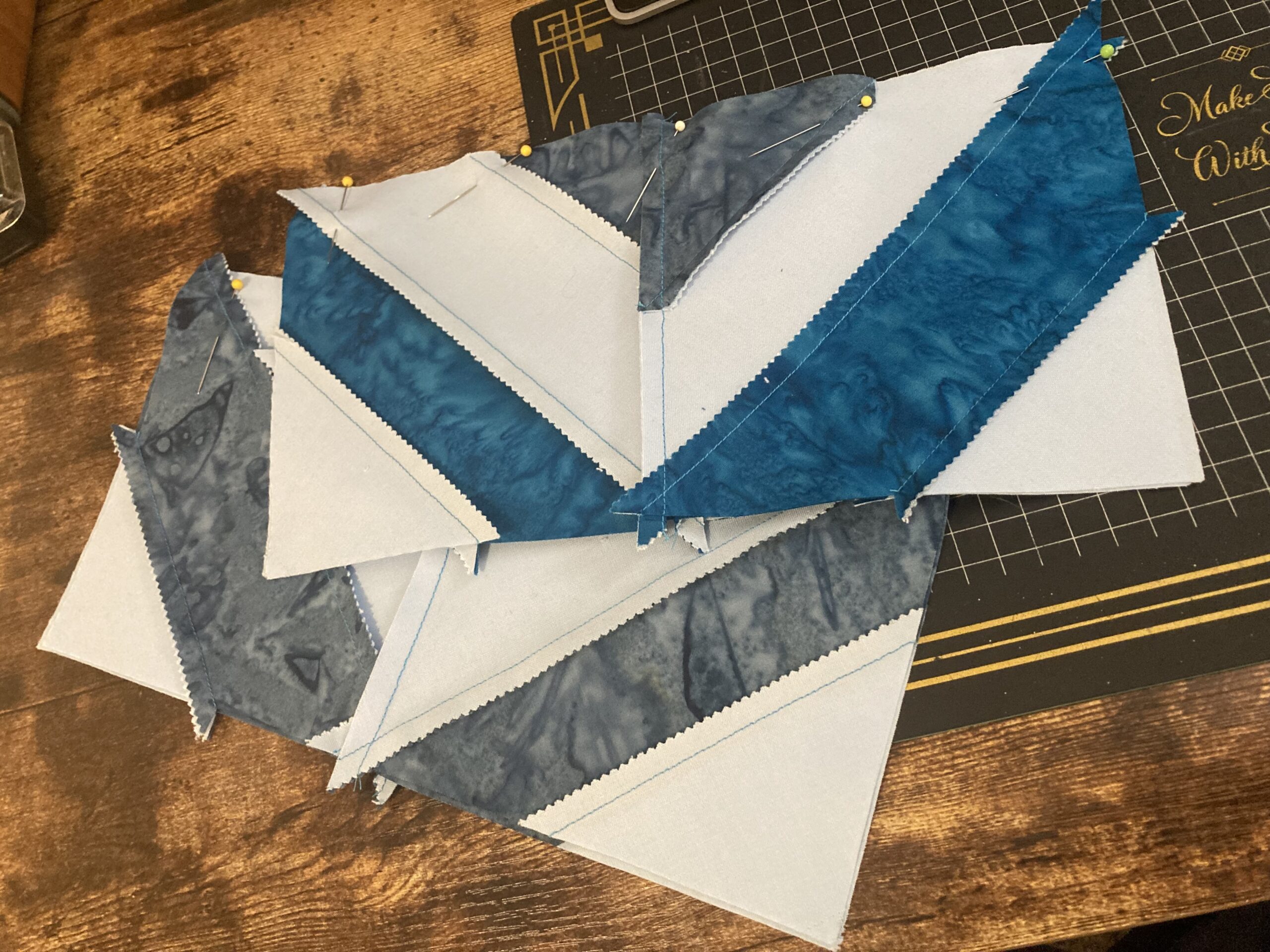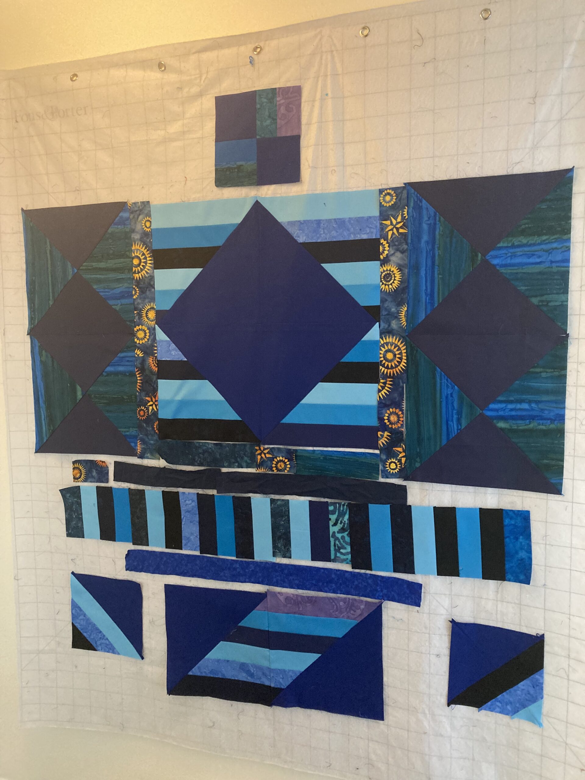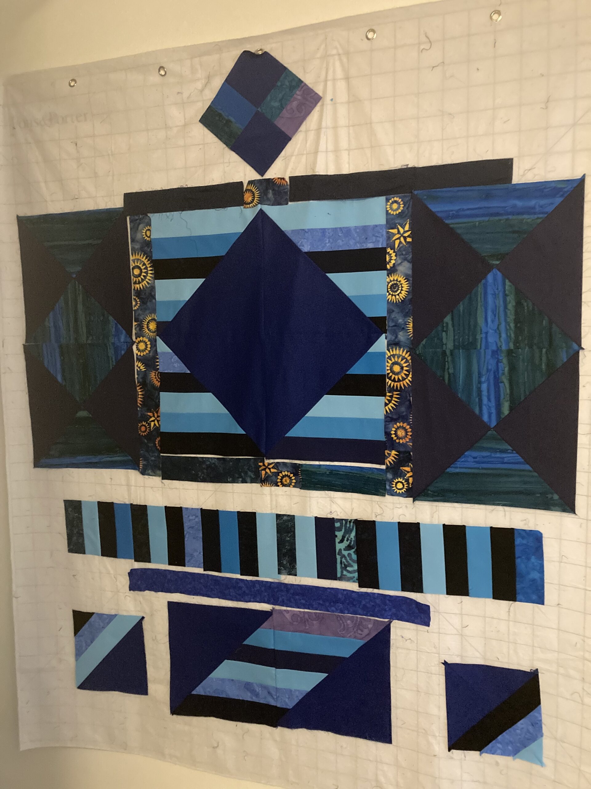 Threw the scrap blocks up on the wall, so I can at least see what I have for the backing so far. Which, at this point, is a lot of open space. Think I’ll try that loop bit again with WOF strips.