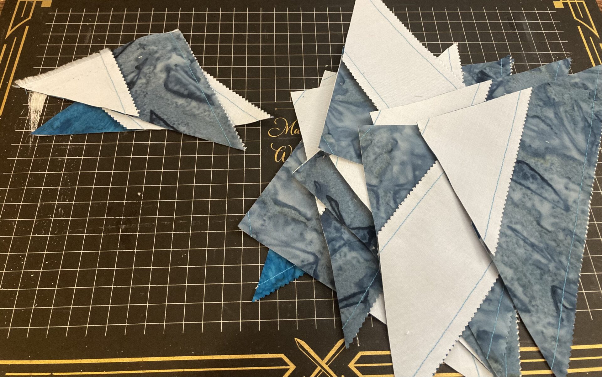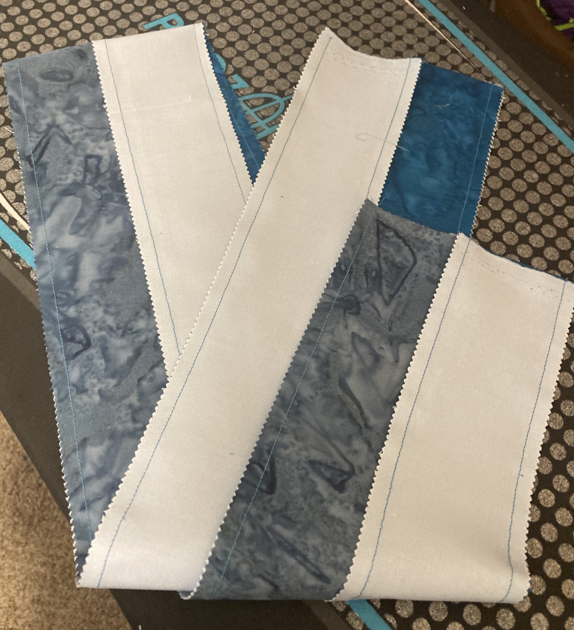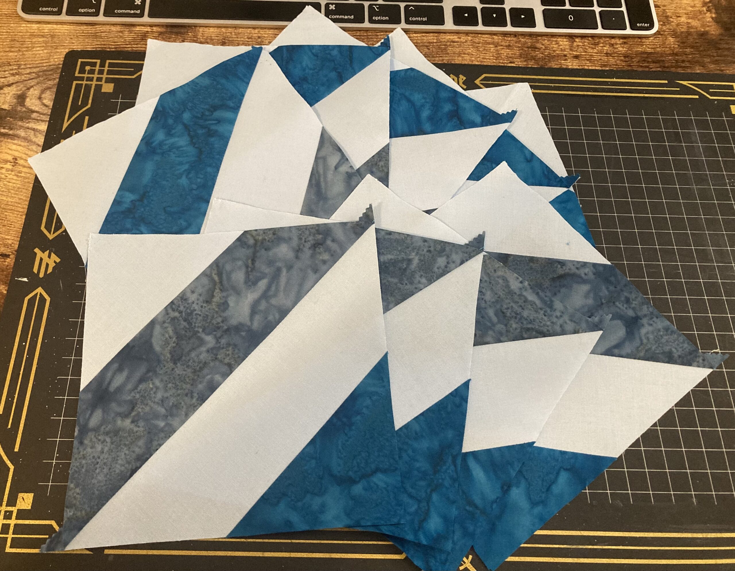Threw the scrap blocks up on the wall, so I can at least see what I have for the backing so far. Which, at this point, is a lot of open space. Think I’ll try that loop bit again with WOF strips.