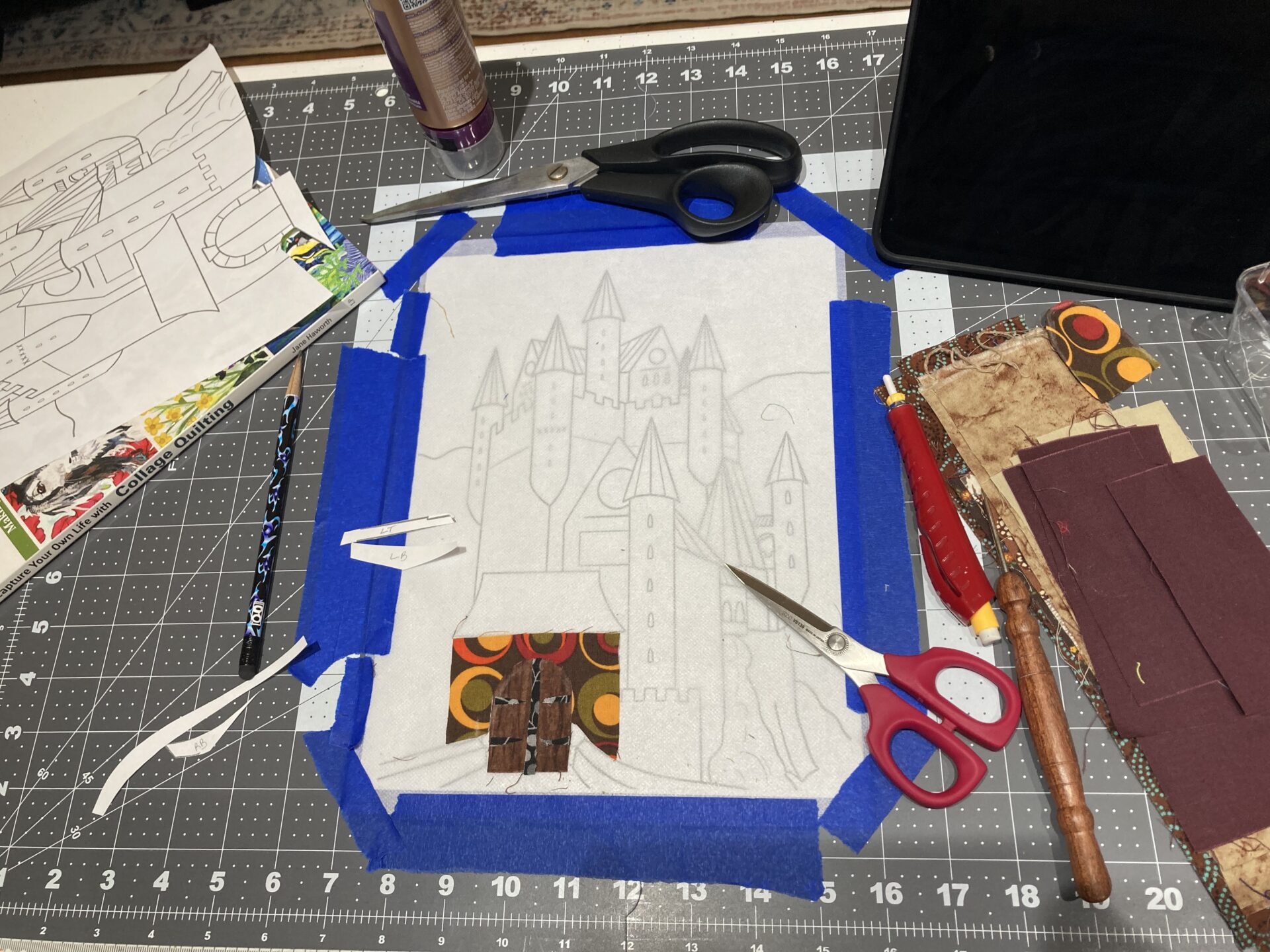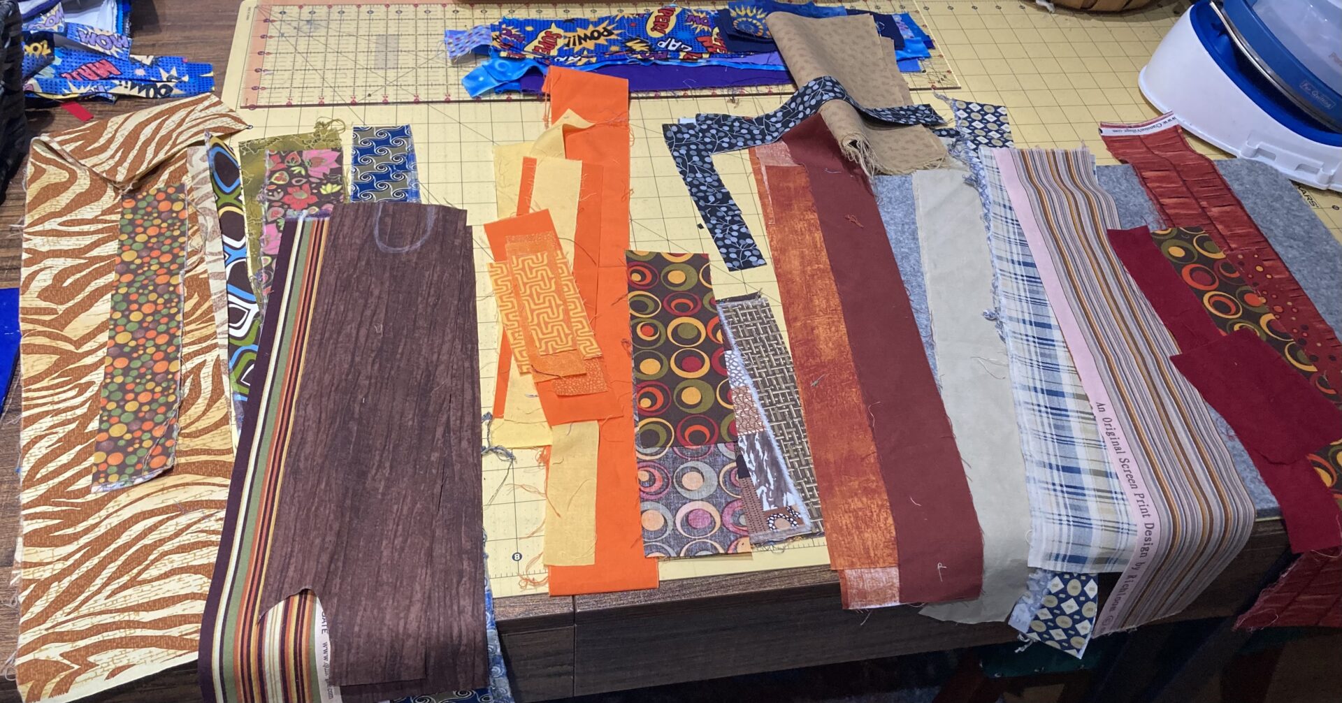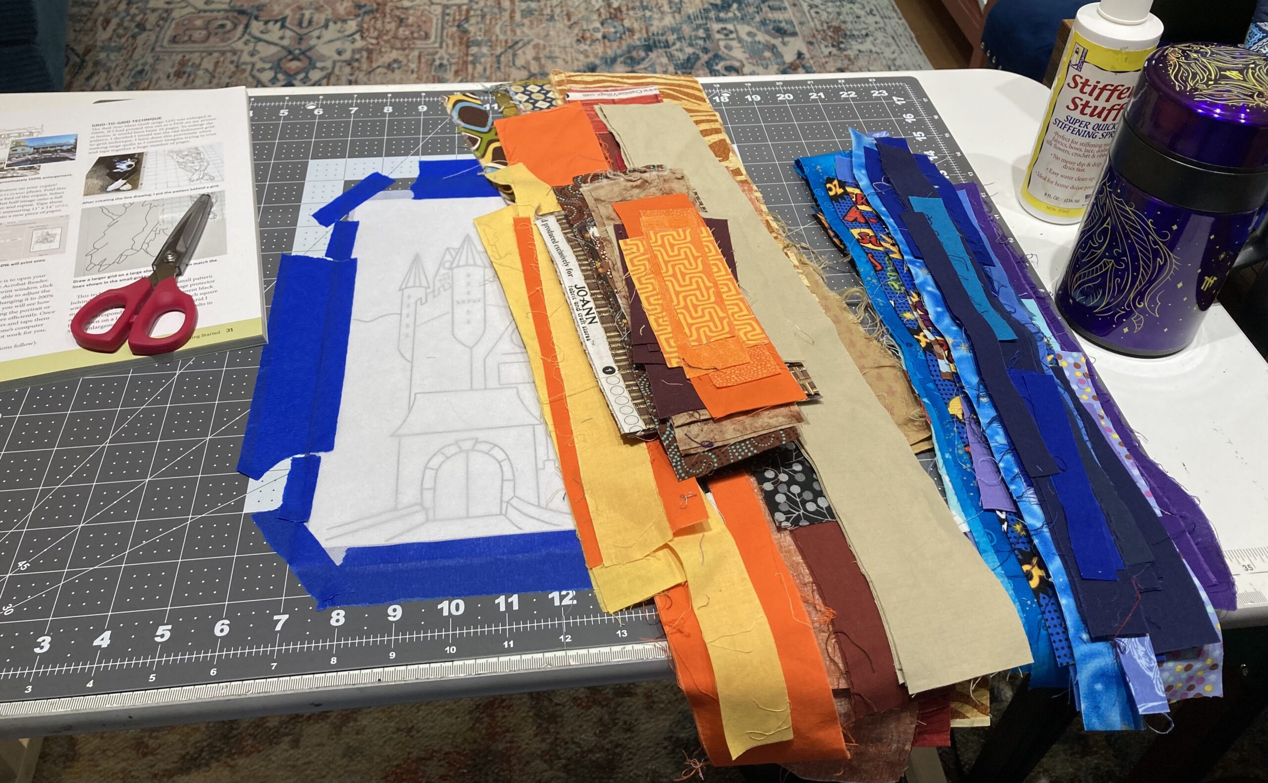 Stiffy Stuff (*snicker*) takes a few hours to dry, so spraying along the way is not going to do anything but impede flow state and irritate me. Need to take a few days and prep all of the potential fabrics while rethinking my starting point. Working in mixed order is a layer of complication I don’t need at this moment.