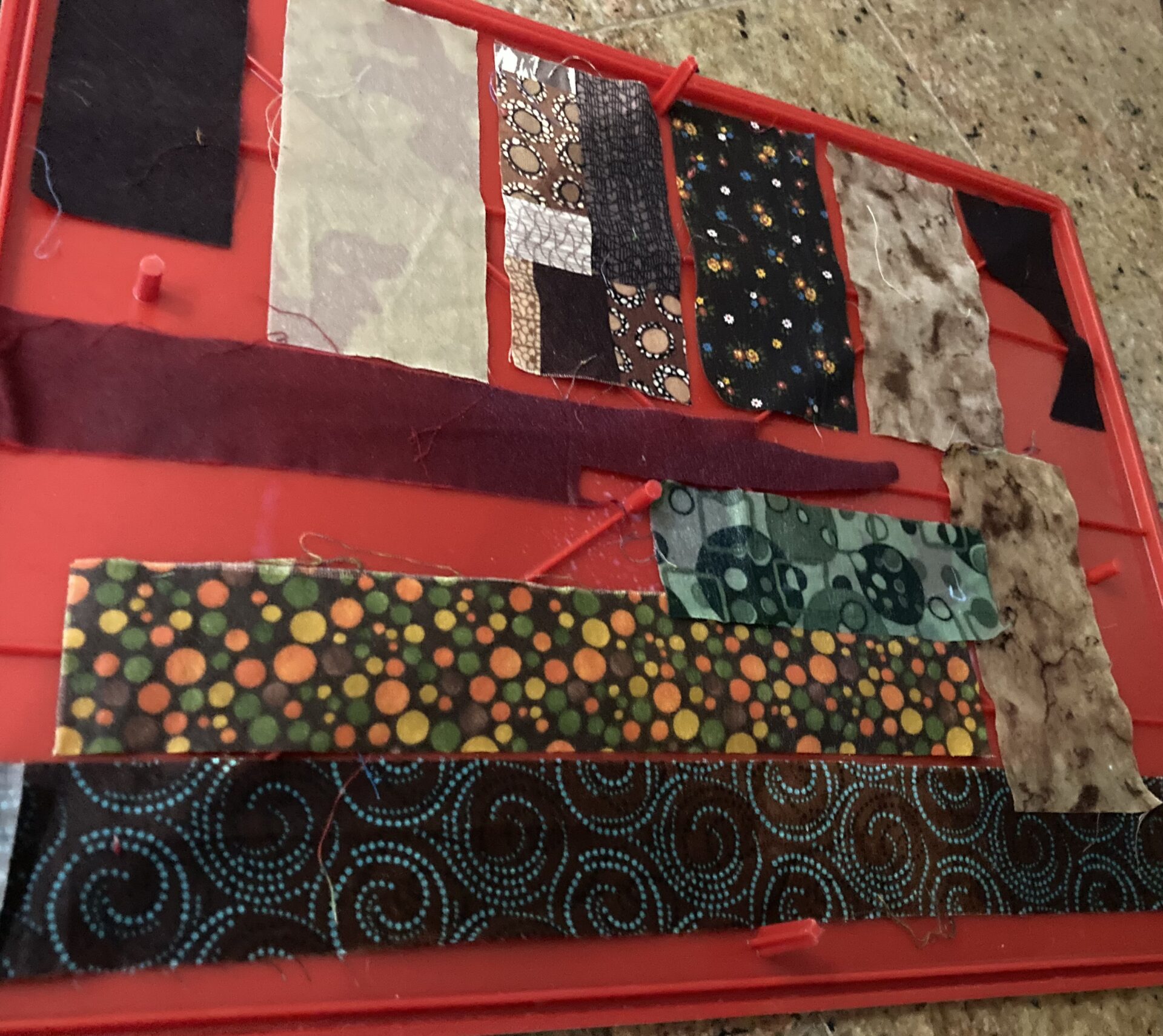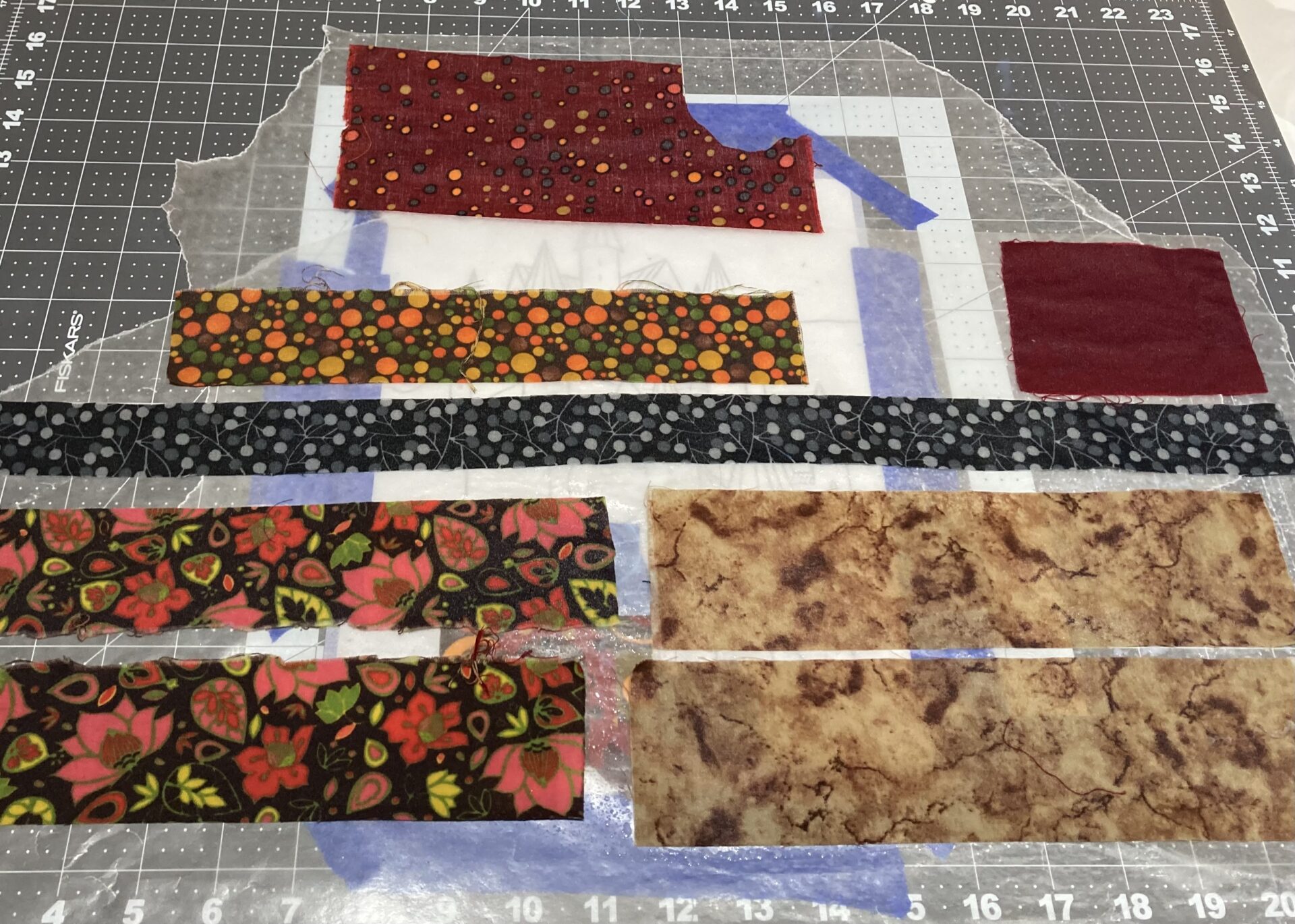 So much easier without the wiggles dropping by to help. Definitely seeing the appeal of raw edge applique. This would be beyond my patience level in needle turn. Maybe EPP…. Maybe not. Starting from the back helped. Not sure my initial triad strikes the right chord, but trying not to overthink the prototype. First drafts are fragile.