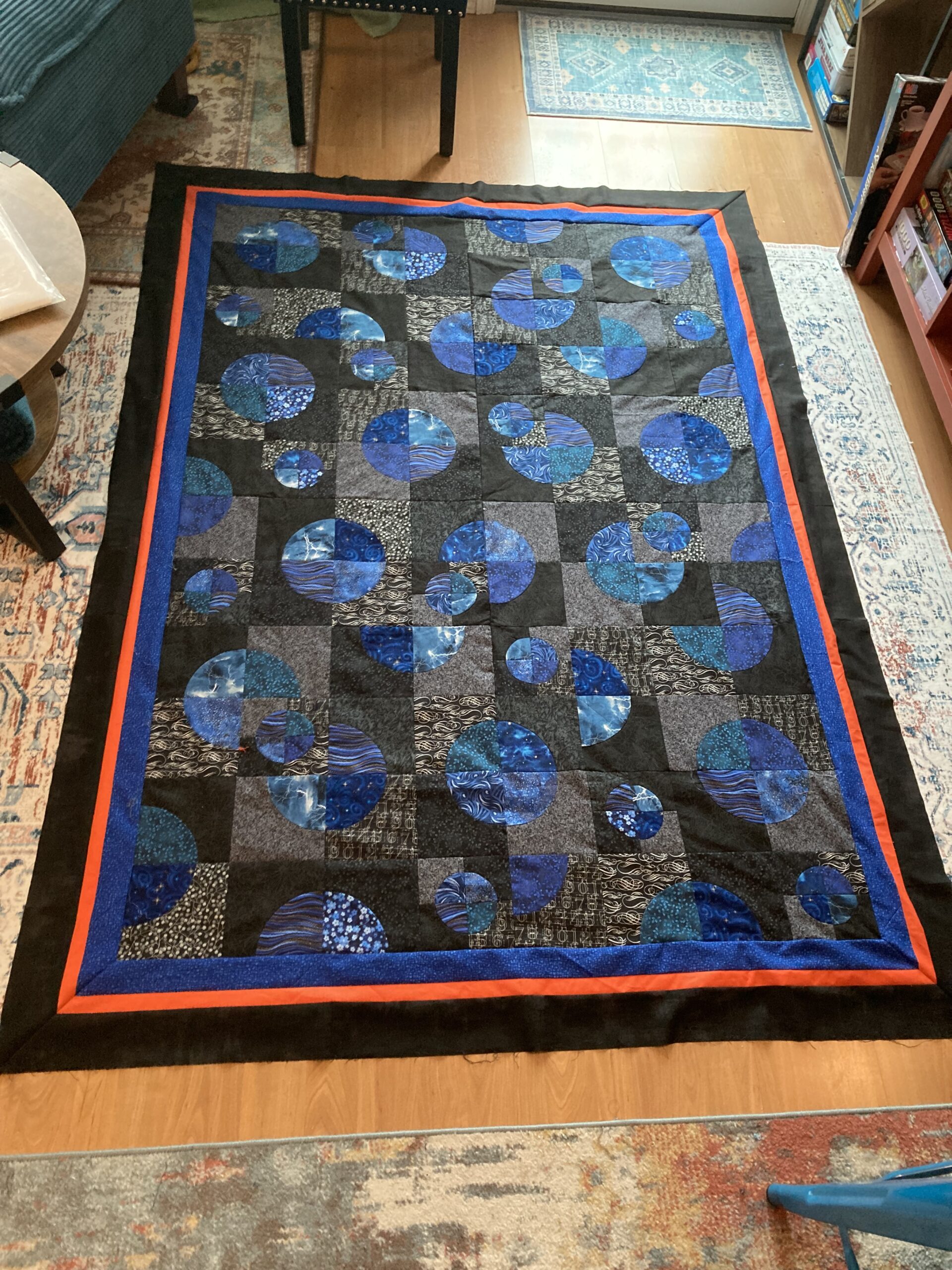 Blocks down, laundry caught up, stitching faster than expected. Not bad.