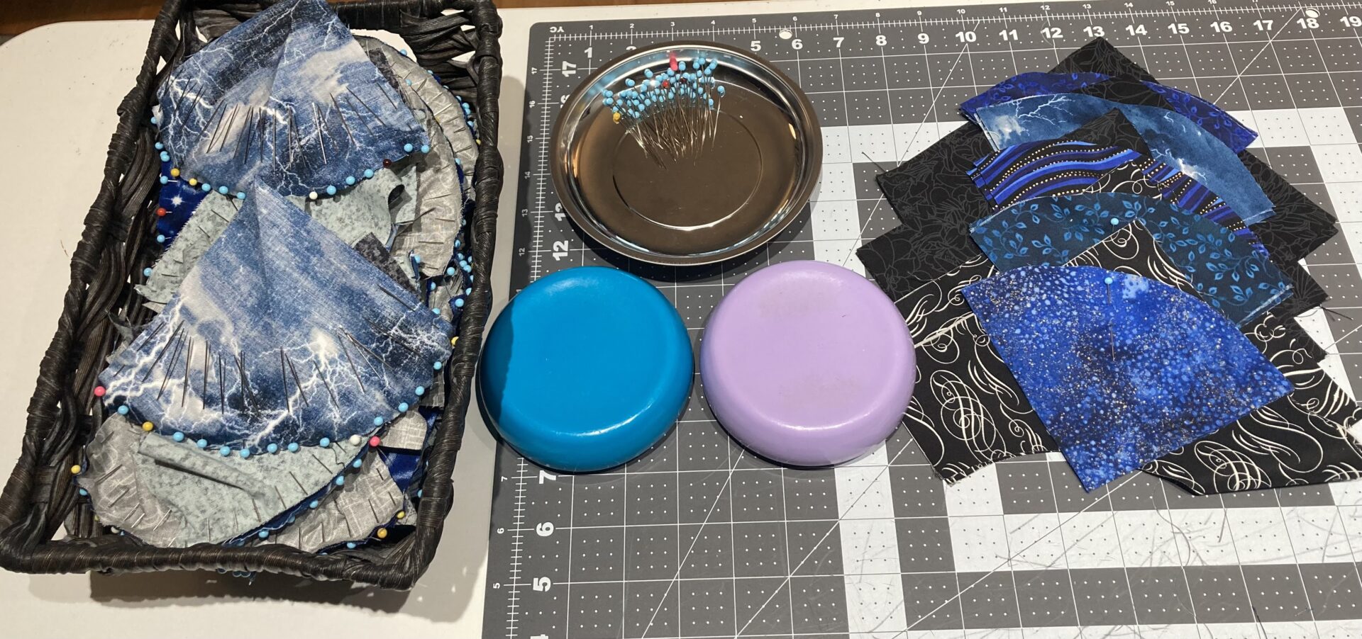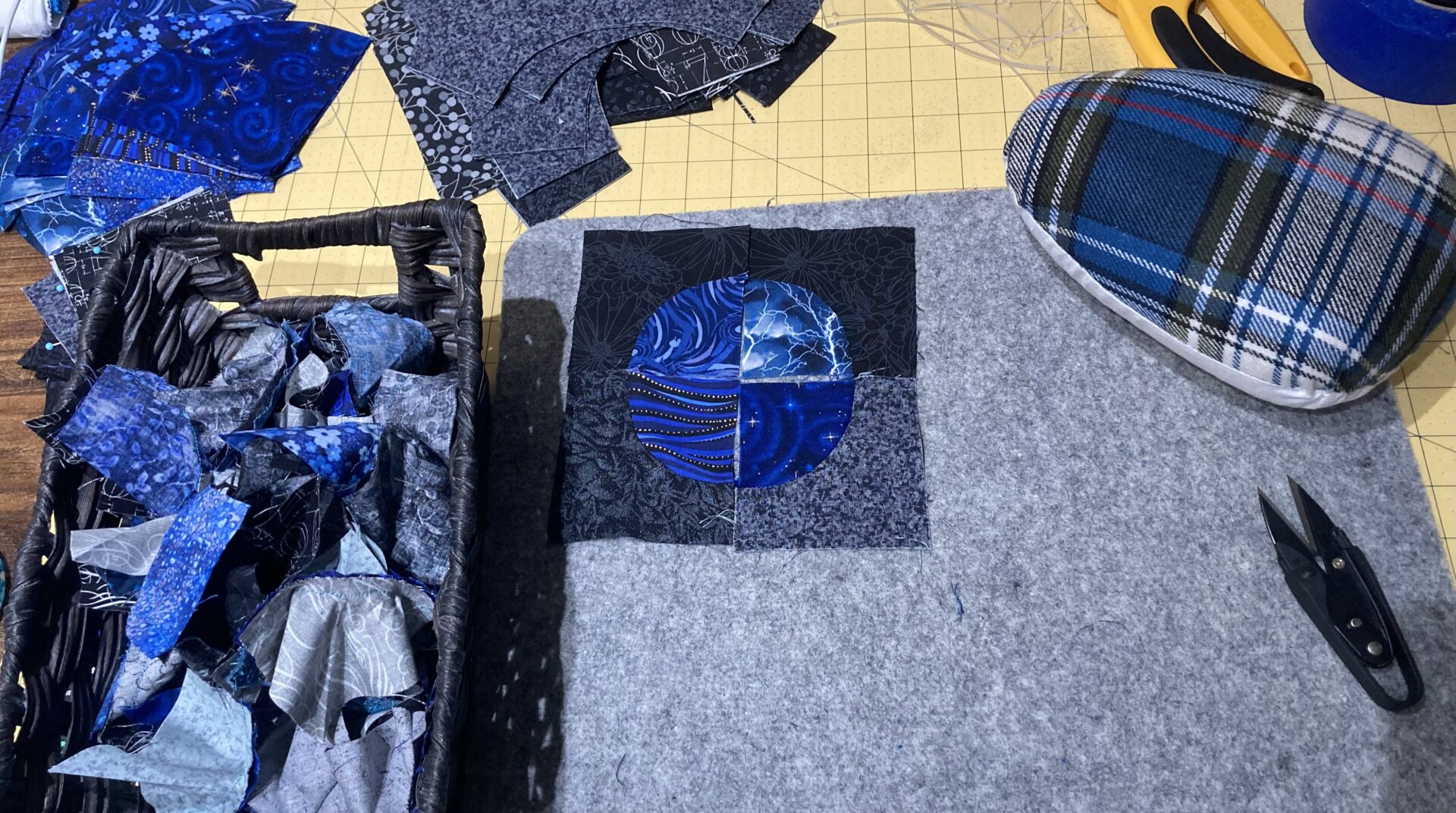 Here’s hoping four rounds are enough to start working the layout. Rethinking the matching framework now that textiles are in hand – the black & blue distinction reads clearly enough without it.