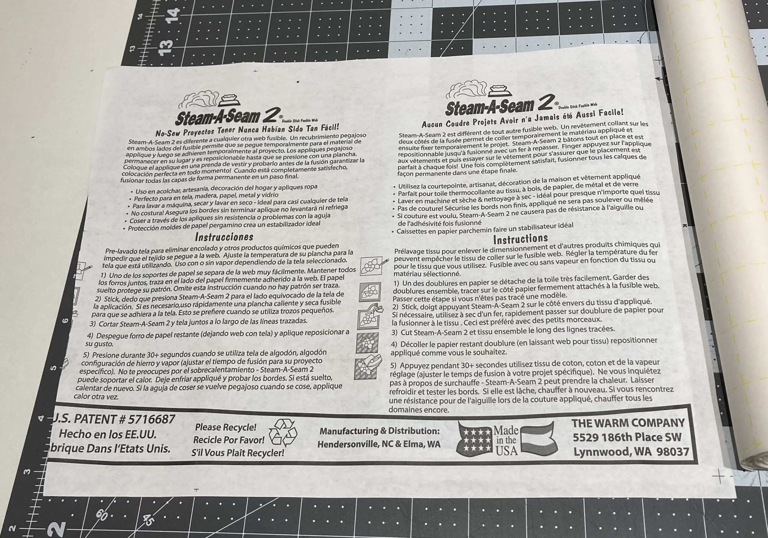 My last attempt at collage quilting was on the messy side. Kris recommended I try Pattern Ease with Seam-a-Seam-2 on this one. The Pattern Ease isn’t much different from the interfacing I used on the castles, but it takes marker with less bleeding. Trading fabric stiffener and glue for fusible web is definitely a step in the right direction. I did pick up some iron cleaner, just in case.