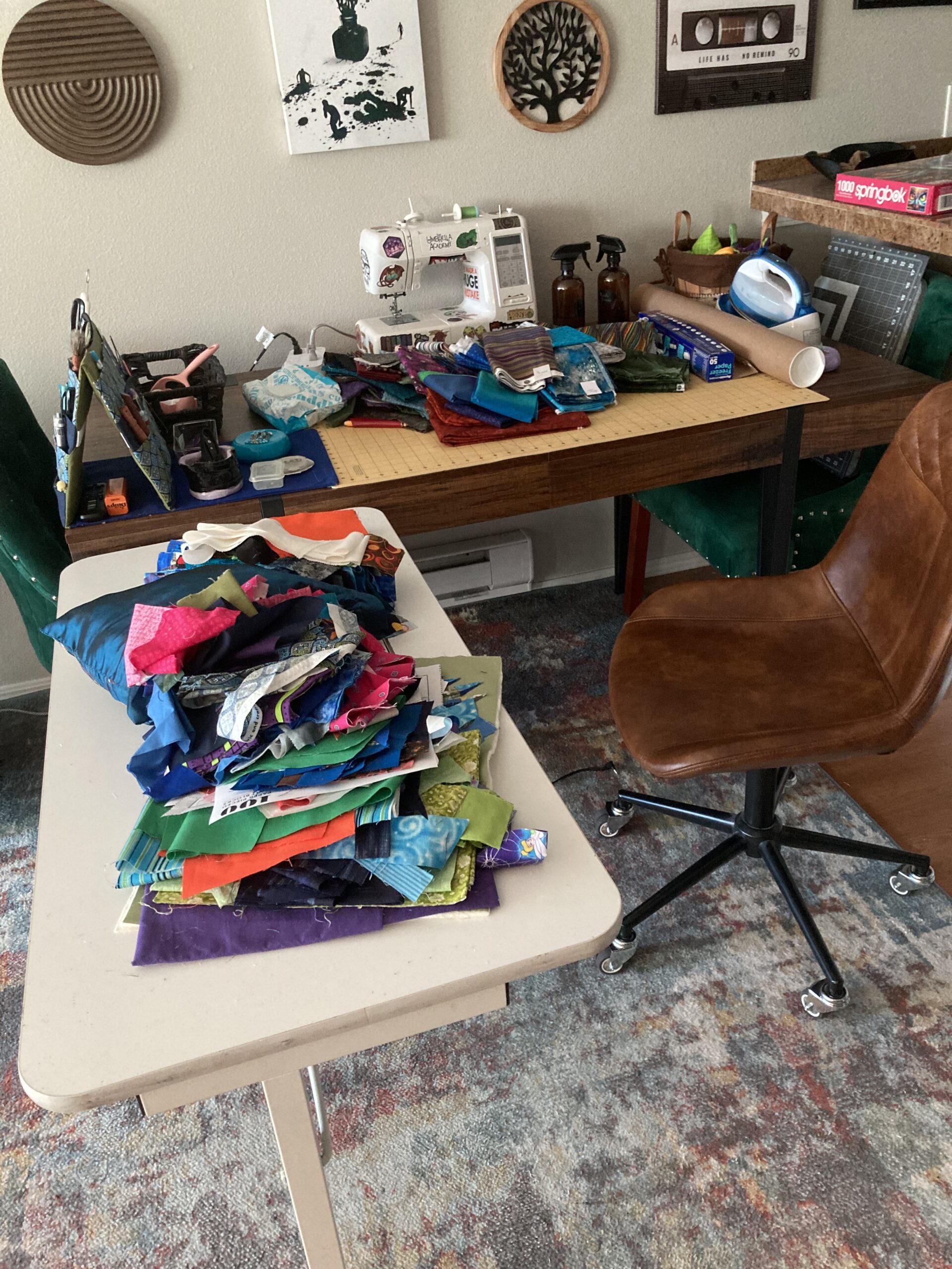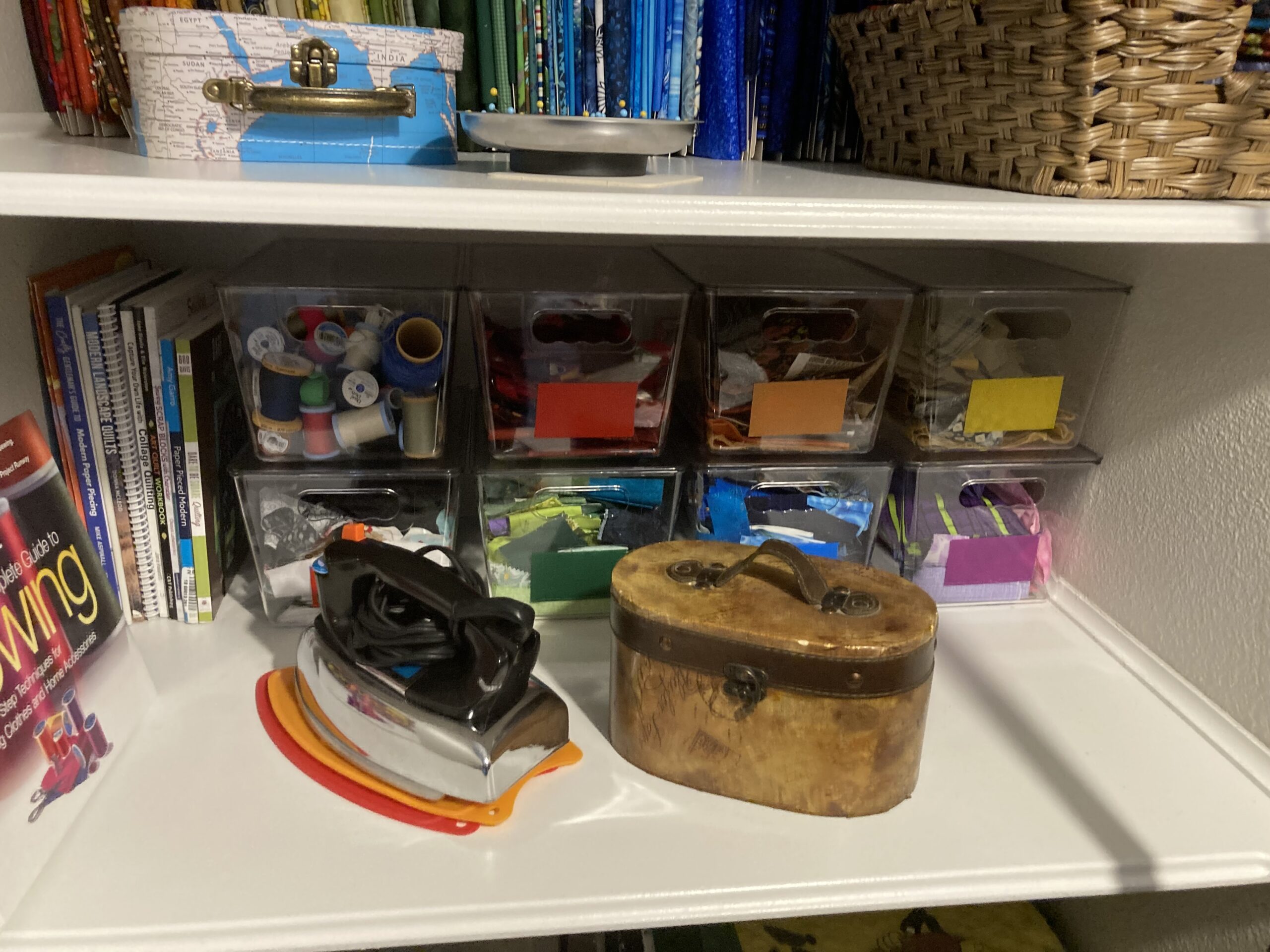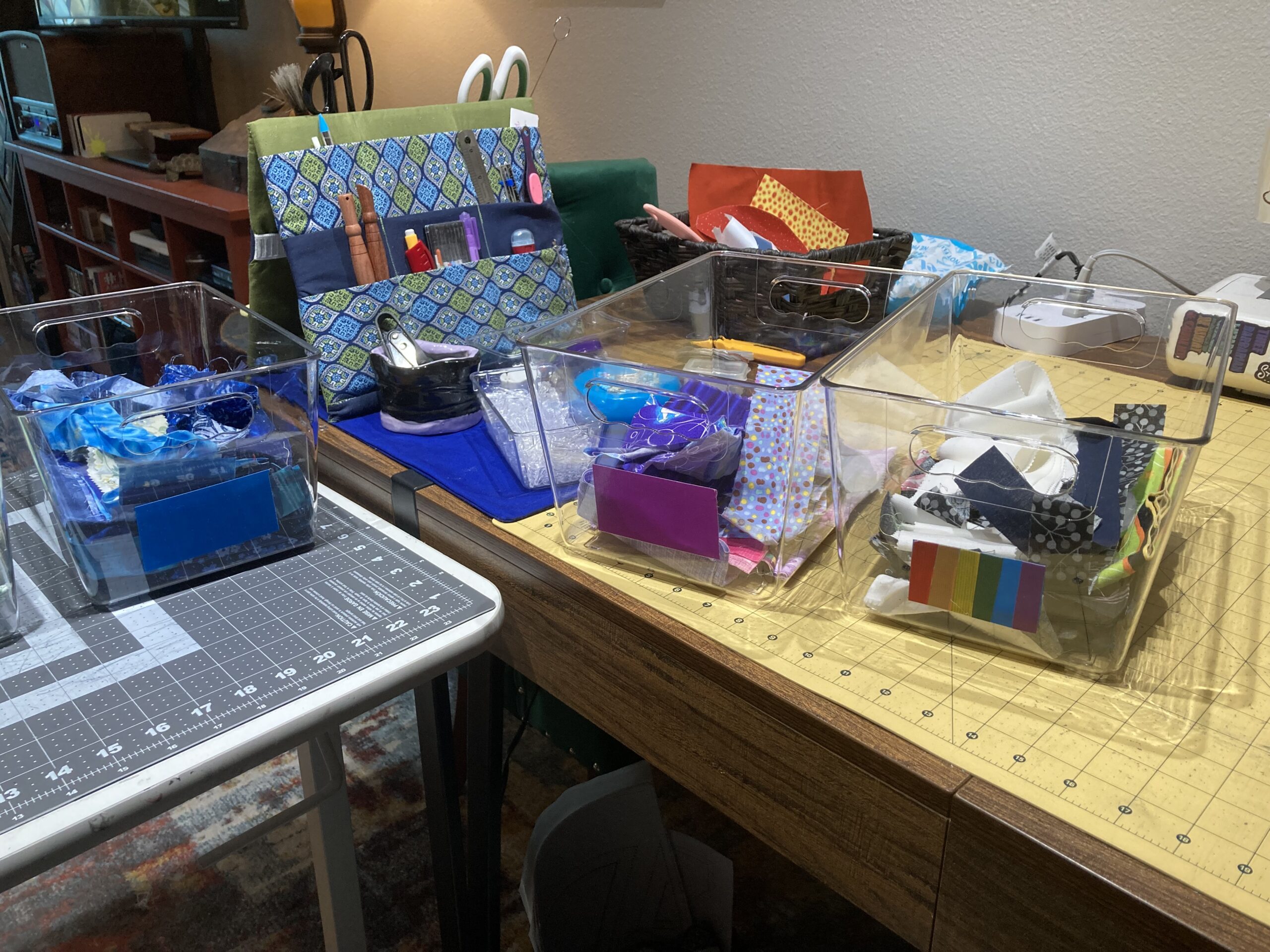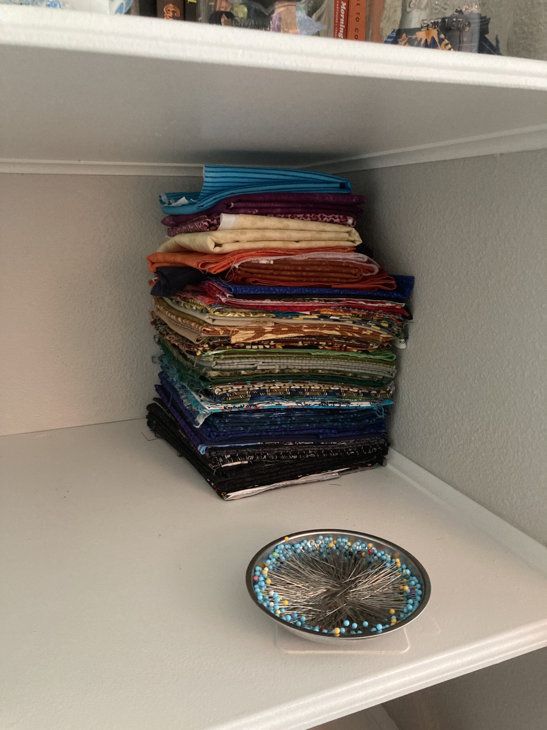 Brought in bigger bins and went hue-based this time. Picked up some comic book boards and plastic clips so I can see my yardage. One more small drawer organizer on order for the cutting table, but it’s mostly there. For now anyway.