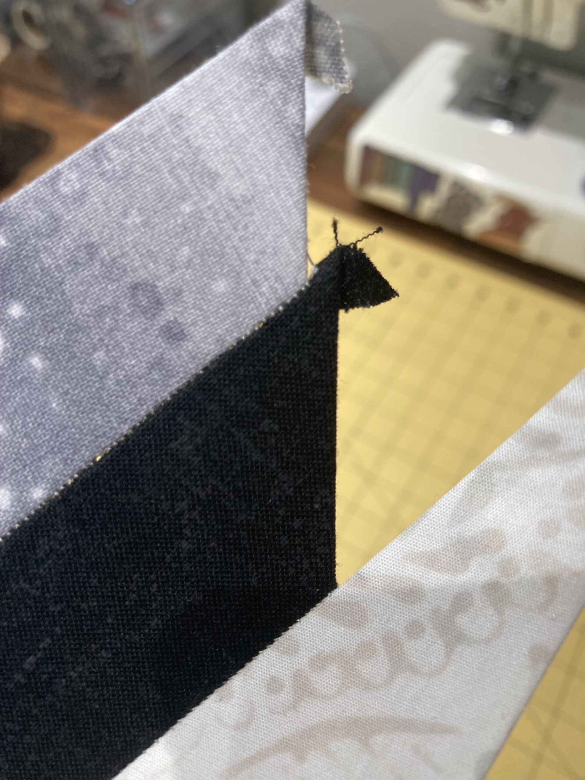Should have trimmed down the seam allowance at the point of the lowest wing segment. The resultant end is too chunky and doesn’t quite lie flat. Quilting will help, but it’s still annoying.