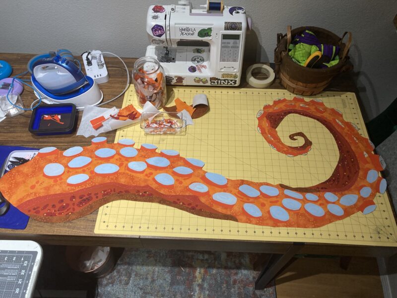 Tried another variation on the color blocking, but its still not quite right. Third time’s a charm. Third tentacle