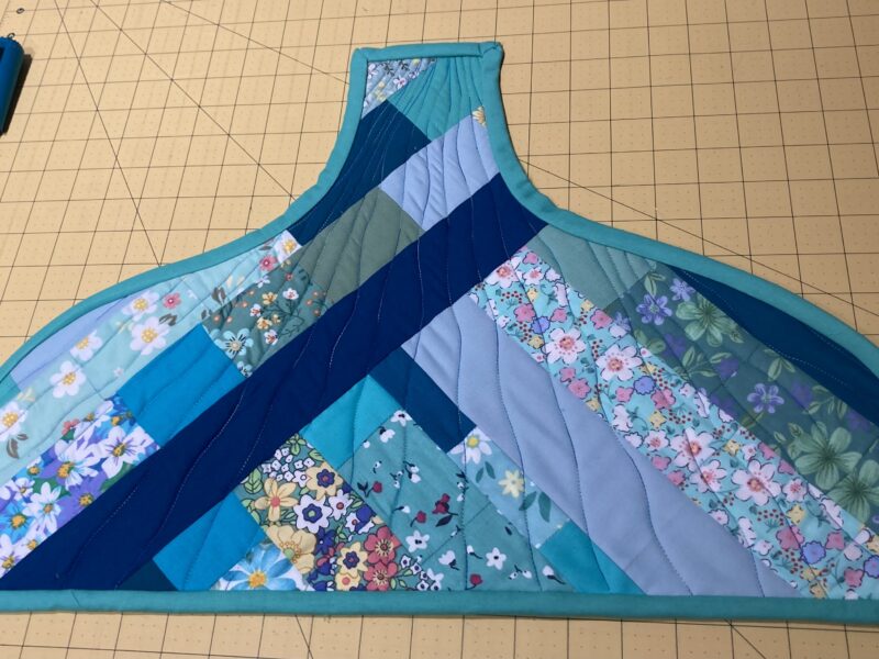 Side two basted and fused. Ended up piecing together muslin scraps into an extra back, which makes a decent