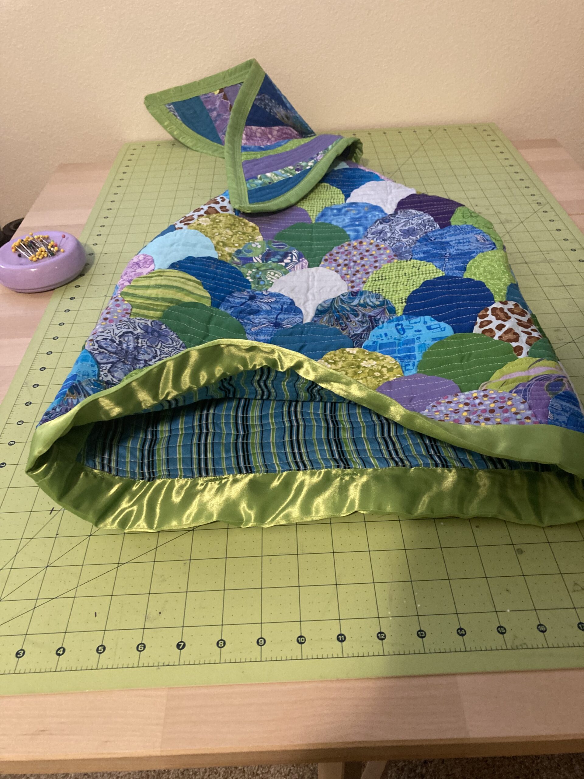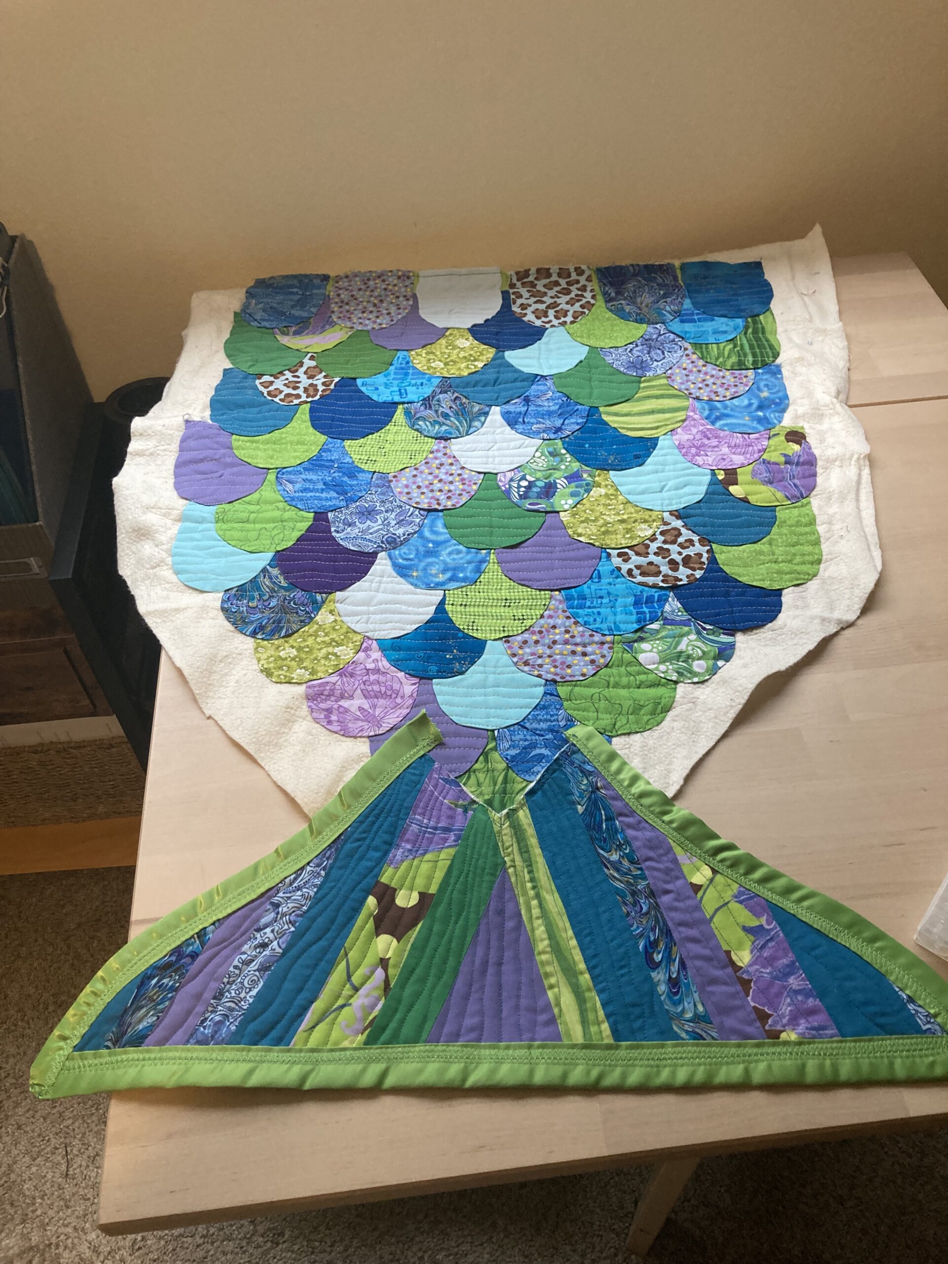 Only enough batting for one side and the tail. Found some leftover blanket binding, though I cannot for the